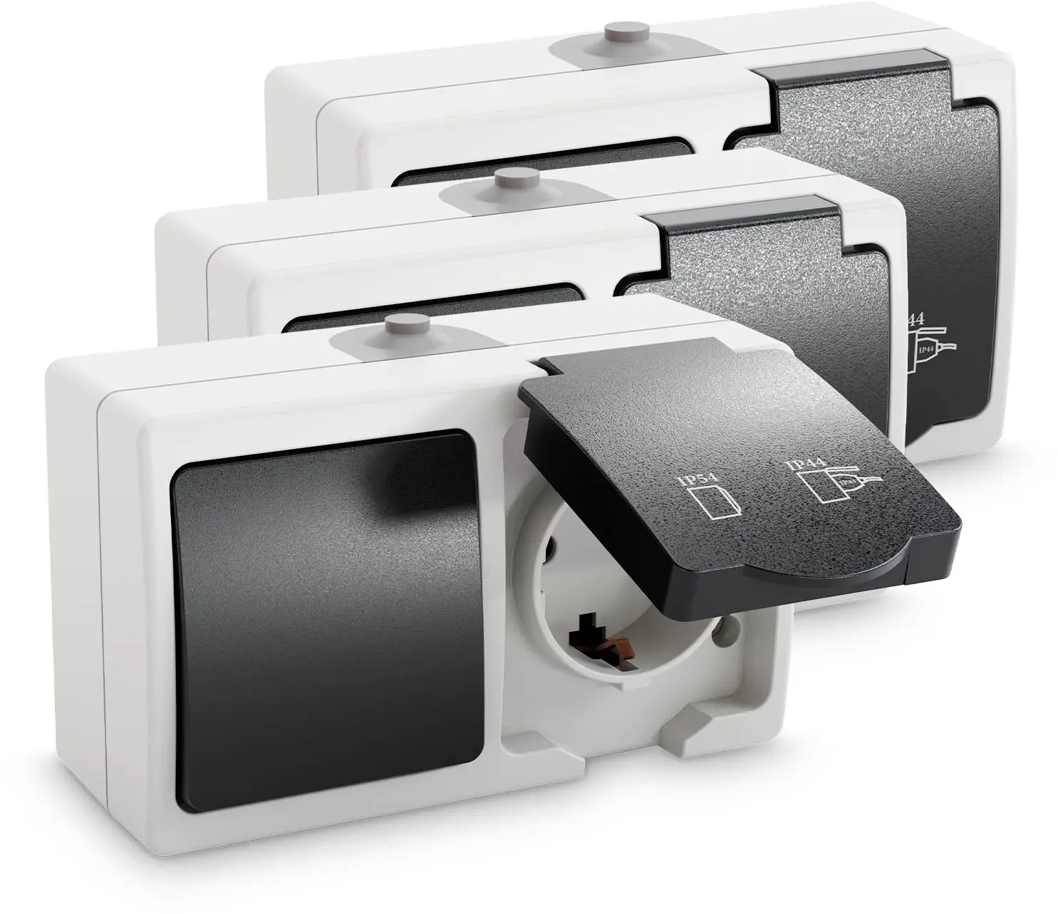 Stromanschlüsse & Steckdosen Elektroinstallationen & Smart Home Verteiler & Sicherungskästen Verteilerschrank-Technik Steckdose für Hutschienenmontage Elektronik und elektronische Komponenten - EAN:5901130483921 - Dreifachsteckdose, weiß RAL 9016, mit Klappe in der Farbe der Steckdose, Aufputz, IP44, STANDARD: PN-IEC-60884-1:2006, 16A/250V HERMES ist eine Serie hermetischer Aufputz-Elektrogeräte, darunter Schalter und Steckdosen. Bei Kunden und Installateuren seit vielen Jahren bekannt, ist sie eine geschätzte und bewährte Lösung. Um neuen Erwartungen gerecht zu werden, hat der Hersteller sein Angebot um neue Farbvarianten in Weiß, Braun und Anthrazit erweitert und das modische und praktische Schwarz hinzugefügt. Die Serie besticht durch ihr minimalistisches Design, das sich nahtlos in trendige, dunkle Innenräume einfügt, aber auch als markanter Kontrast an der Wand dienen kann, wo sie zusammen mit schwarzer Verkabelung Lofts einen wahrhaft industriellen Charakter verleiht. HERMES ist echte Qualität. Hergestellt aus durchgefärbtem Kunststoff, rt es auch nach langem Gebrauch keine Abnutzungserscheinungen. Diese Leuchte kann sowohl im Innen- als auch im Außenbereich erfolgreich eingesetzt - gefunden von Kelkoo Ein praktisches 3er-Pack Aufputz Schalter Steckdosen Kombinationen, ideal für gröÃ?ere Projekte oder mehrere Einsatzorte. ![]() ![]() greate 3x Aufputz Schalter Steckdose Kombination mit IP54 für Feuchtraum - Steckdose Aufputz mit Wechselschalter 250V & 16A - Aufputzsteckdose mit Schalter, Steckdose Schalter Aufputz