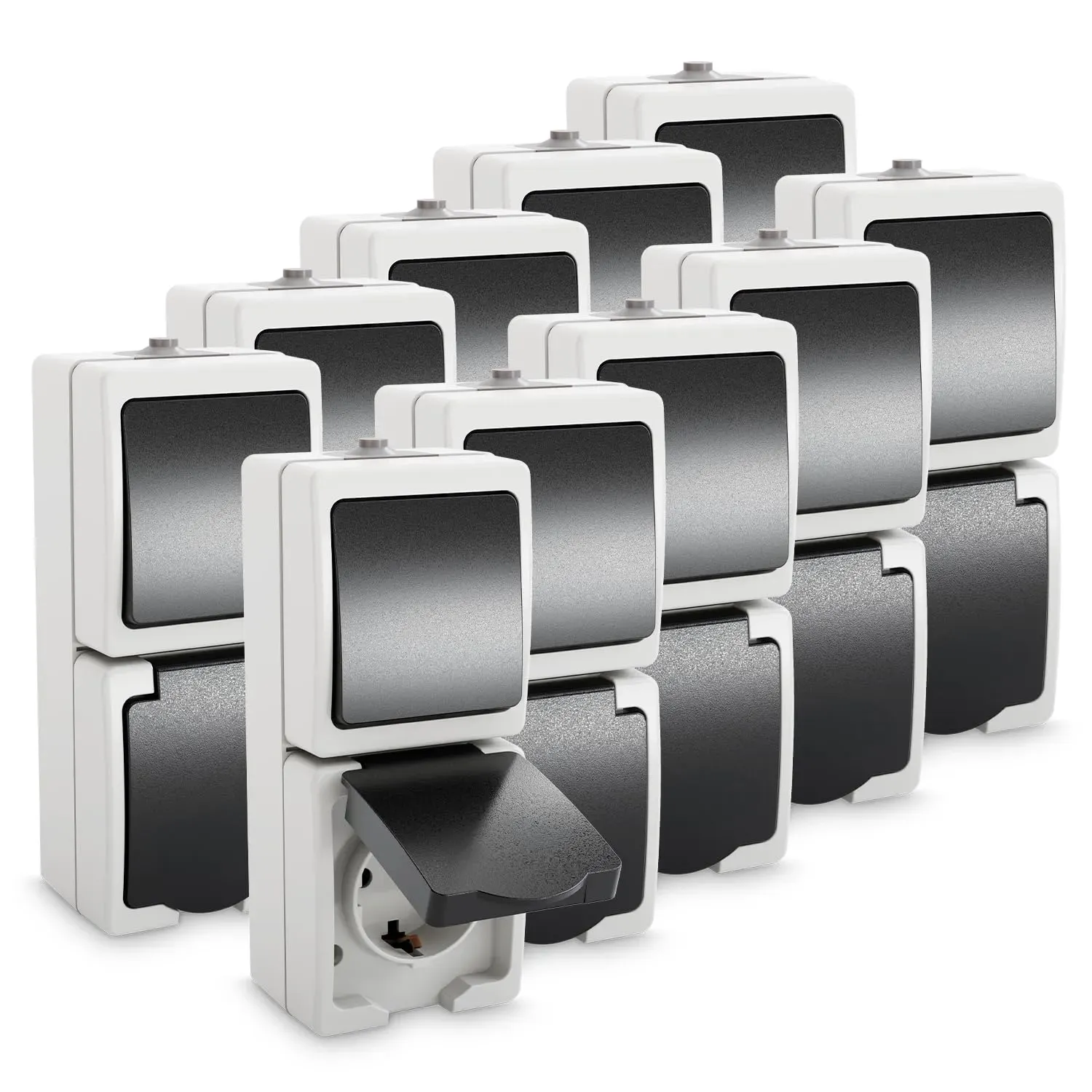 ![]() ![]() EYPINS Aus/Wechselschalter-Steckdose IP66 Aufputzsteckdose mit Schalter Wasserdicht Außensteckdose mit Wechselschalter 250V & 16A Steckdose Aufputz Wandsteckdose für Garten Garage Feuchträume