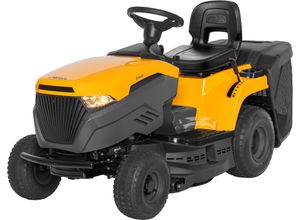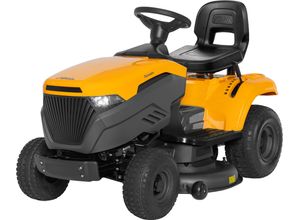 Aufsitzmäher Wohnen Haus Garten Garten Balkon Gartengeräte - - Der ALPINA AT3 108 HA ist ein kompakter Seitenauswurf-Rasentraktor, der dank seines kleinen Wendekreises leicht zu fahren ist. So lassen sich Rasenflächen in der Nähe von Steinen oder Kanten problemlos schneiden. In Verbindung mit dem stufenlosen und pedalbedienten Hydrostatgetriebe bringt der Rasentraktor spaß bei der Rasenpflege. Das Herzstück des AT3 108 HA ist der ST 450 Motor (Powered by STIGA), der mit einer Leistung von 7,5 kW (10,2 PS) bei 2800 U/min und einem Hubraum von 432 cm3 zu überzeugen weiß. Das Mähwerk ist mit zwei gegenläufigen Doppelmessern ausgestattet und kann bequem über die elektromagnetische Kupplung zugeschaltet werden. Danach stehen Dir 108 cm Schnittbreite zur Verfügung, die sich in 7 Stufen, von 25 bis 80 mm, in ihrer Schnitthöhe regulieren lässt. Hierbei wird durch die Tasträder stets sichergestellt, dass ein Kontakt des Mähwerks mit dem Boden vermieden wird. Der AT3 108 HA verfügt über einen Wasseranschluss, der die Reinigung des Mähraumes erleichtert. Mit dieser Ausstattung eignet sich der AT3 108 HA für Rasenflächen von bis zu 6000 m2. Dank der Scheinwerfer ist selbst das mähen in der Dämmerung kein Problem. Der AT3 108 HA kann durch zahlreiches Zubehör, wie zum Beispiel ein Mulchkit oder ein Schneeschild für den Winterdienst, erweitert werden. Der Rasentraktor wird teilmontiert geliefert. Das Ladegerät ist optional und nicht im Lieferumfang enthalten., Produktdetails: Anzahl ... Der STIGA GARDEN Estate 384 ist ein Topseller mit Hydrostatgetriebe, der für seine Wendigkeit und Benutzerfreundlichkeit bekannt ist. ![]() Rasentraktor STIGA GARDEN 'Estate 384', gelb, B:88cm H:110cm L:181,4cm, Rasentraktoren, Hydrostatgetriebe, 432 cm³, Topseller