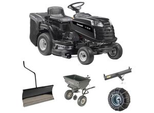 Aufsitzmäher Wohnen Haus Garten Garten Balkon Gartengeräte - - Wendig, robust, zuverlässig. Mit den sehr griffigen aber dennoch rasenschonenden Antriebsrädern bewältigt der STIGA Tornado 5108 problemlos bis zu 6.000 m² Fläche. Der STIGA-Einzylindermotor mit 452 cm³ Hubraum ist sicher in einem Gusseisengehäuse verbaut und im Kraftstofftank passen bis zu sechs Liter Benzin. Und das OHV-Design (hängendes Ventil) senkt sowohl die Kraftstoffkosten als auch die Emissionen. Das 108 cm breite Mähdeck mit elektromagnetischem Messer führt das Mähgut nach oben und zur Seite aus. Einfach eine der sieben Schnitthöhen zwischen 25 und 80 mm auswählen und dann losmähen - auf dem STIGA-Classic-Sitz - unserem neuestes Ergänzungsmerkmal zum ergonomisch gestalteten Lenkrad. Um den Rasen mit nährstoffreichem organischen Dünger zu versorgen, sind optional ein Mulchkit, eine praktische Zugöse und ein Batterieladegerät erhältlich. Die Vorderachse aus Stahl wurde für den harten täglichen Einsatz entwickelt. Und bei Sonnenuntergang kommen die LED-Scheinwerfer zum Tragen - sie ermöglichen selbst bei wenig Licht sicheres Arbeiten und bewahren Fahrer wie Rasentraktor vor Gefahren., Produktdetails: Anzahl Messer: 2 Stk., Auswurf: Seitenauswurf, Wenderadius: 65 cm, Geschwindigkeit maximal: 8,8 km/h, Empfohlene Rasenfläche: 6.000 m², Ausstattung: Scheinwerfer, Funktionen: Radantrieb, Betriebsart: Benzin, Maße Gewicht: Breite: 120 cm, Gesamtlänge: 172,6 cm, Höhe: 110 cm, Länge: 172,6 cm, Hinweis ... Der HANSEATIC HAT 98 Winteredition ist ein vielseitiges Modell, das dank umfangreichem Zubehör auch im Winter eingesetzt werden kann. ![]() Rasentraktor HANSEATIC 'HAT 98 Winteredition', schwarz, B:102cm H:109,8cm L:181,4cm, Rasentraktoren, inkl. Anhängerkupplung, Streuanhänger, Schneeschild und Schneeketten