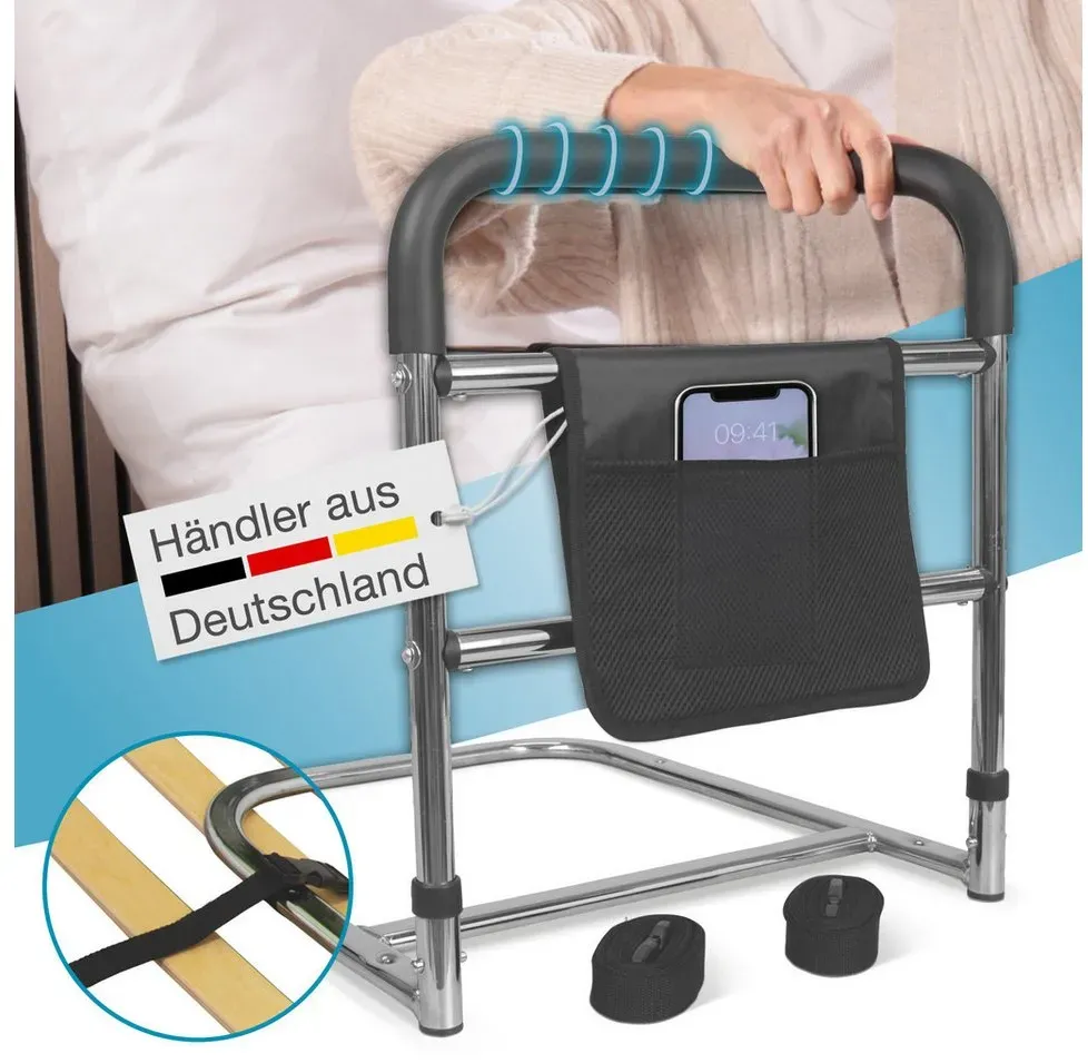 Kategorie: Behinderten-Bedarf - kajkey - GTIN:0755113635747 - Doppelte Handgriffe für mehr Flexibilität Unsere aufstehhilfe bett verfügen über zwei rutschfeste, schaumstoffgepolsterte Handgriffe. Das ergonomische Design mit doppelten Armlehnen ermöglicht eine gleichzeitige Nutzung beider Hände, was das Aufstehen erleichtert, selbst bei eingeschränkter Handkraft. Der zusätzliche Griff ist abnehmbar und kann flexibel auf beiden Seiten des Bettes angebracht werden. Höhenverstellbar für verschiedenen Bedarfe Die aufstehhilfe bett bieten eine dreifache Höhenverstellung (42 bis 48 cm) und eine Neun-Gang-Stützhöhe von 39 bis 55 cm. Mit insgesamt 11 verstellbaren Positionen können Sie die Stütze einfach an die verschiedenen Bettgrößen (King, Queen, Full, Twin, Medium) anpassen. Abnehmbare Aufbewahrungstasche Der aufstehhilfe bett wird mit einer robusten, abnehmbaren Tasche geliefert, in der Sie häufig benötigte Gegenstände wie Lesebrillen, Bücher oder Medikamente verstauen können. Perfekt, um Ihre Schlafumgebung komfortabler zu gestalten.Sie können Ihr eigenes Sensorlicht kaufen und es für Ihre nächtliche Mobilität in eine Aufbewahrungstasche packen. Rutschfeste Armlehnen & Ersetzbare Füße Die Armlehnen sind mit weichen Schaumstoffgriffen ausgestattet und bieten sicheren Halt beim Sitzen und Aufstehen. Der Hocker ist mit zwei Arten von Füßen ausgestattet: runde Füße für raue Böden und Saugnapffüße für glatte Oberflächen, beide bieten hohe Stabilität. Benutzerfreundliches Design & ... Dieses Bettgeländer ist höhenverstellbar und mit einer Tasche ausgestattet, was es zu einer praktischen und sicheren Wahl macht. ![]() ![]()