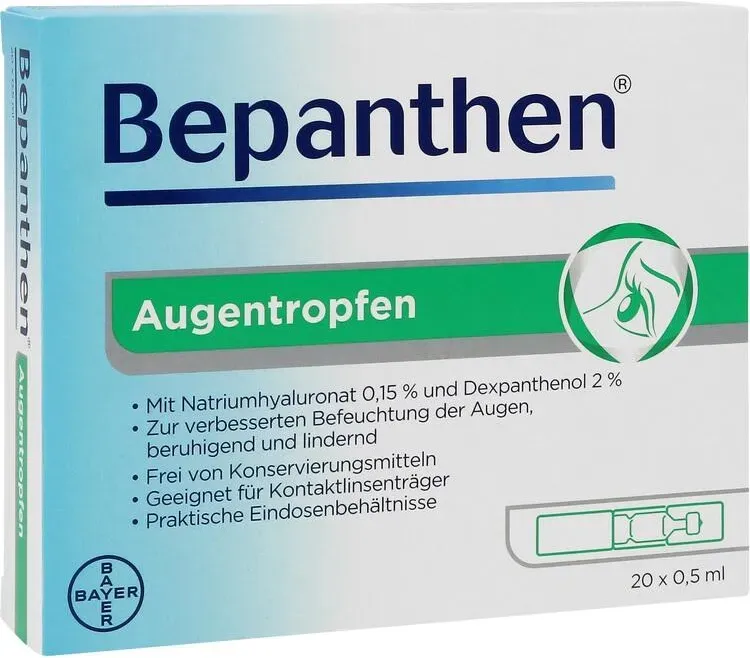 Der angezeigte Preis könnte seit dem letzten Update gestiegen sein - EAN: 4030571005605 - Zur Heilung der Hornhaut bei trockenen Augen Corneregel® Fluid unterstützt die Behandlung von Hornhautschädigungen bei trockenen Augen. Die Augentropfen mit Hypromellose als zusätzlichem Bestandteil lindern schnell Symptome wie Jucken, Brennen,... - Zustand: NEW - bei SHOP APOTHEKE - gefunden von Buycentral Bepanthen Augentropfen in Einzeldosispipetten sind praktisch für unterwegs und bieten eine gute Regeneration und Befeuchtung. ![]() Bepanthen Augentropfen 20x0,5 ml