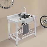 Zustand: Neu - Ausgussbecken - YZJJ YEZIJIAJU - 84965654131 - EAN: 7075917014764 - GEWERBLICHE SCHWERINDUSTRIE-SPÜLE: Tragbare freistehende Spüle wird häufig zum Waschen und Vorbereiten von Spülen in jeder Innen- oder Außenküche, Bar, Restaurant, Waschküche, Badezimmer, Reinigungsraum, Hinterhof, Garten, Balkon, Wohnmobil, Garage oder anderen Umgebungen verwendet. LANGLEBIG UND STABIL: Die Allzweckspüle besteht aus 304 Edelstahl mit einer polierten Oberfläche, die besser gegen Rost und Korrosion beständig ist. Sie wird durch Schwerkraftprägen integral geformt und muss nicht geschweißt werden, um zukünftige Probleme wie Wasserlecks und Abblättern zu vermeiden und ihre Lebensdauer zu gewährleisten. MULTIFUNKTIONALES HANDWASCHBECKEN: Genau wie eine Miniküche bietet Ihnen die geräumige Schüsselmulde über der Spüle genügend Platz, um alles von Besteck, Tellern bis hin zu Töpfen und Pfannen zu reinigen. Der untere Aufbewahrungsschrank ist eine großartige Idee zum Aufbewahren von Reinigungsutensilien und eignet sich perfekt zum Reinigen oder Kochen auf begrenztem Raum. WASCHBECKENSET: Das Edelstahlspülbecken-Set umfasst einen Wasserhahn und ein komplettes Abflussgerät. Der Edelstahlfilter mit Abdeckung ist sehr praktisch für die Entwässerung und Wasserspeicherung, und das U-förmige Abflussrohr kann Geruchsrückfluss verhindern, was die Installation und Verwendung erleichtert. EINFACHE MONTAGE: Wir haben den Montageprozess vereinfacht, sodass Sie kein zusätzliches Geld für die ... Ein umfassendes Set mit Spülenschrank, Spüle und Armatur, das sich gut für den Outdoor-Bereich oder als Komplettlösung für die Küche eignet. ![]() ![]() Spülenschrank mit Spüle und Armatur,Küchenspüle mit Unterschrank,Waschbecken Senke Ausgussbecken Spülenunterschrank,Outdoor 1 Becken Spültisch Schrank,Set Spülschrank Komplettspüle Spülbecken ( Color