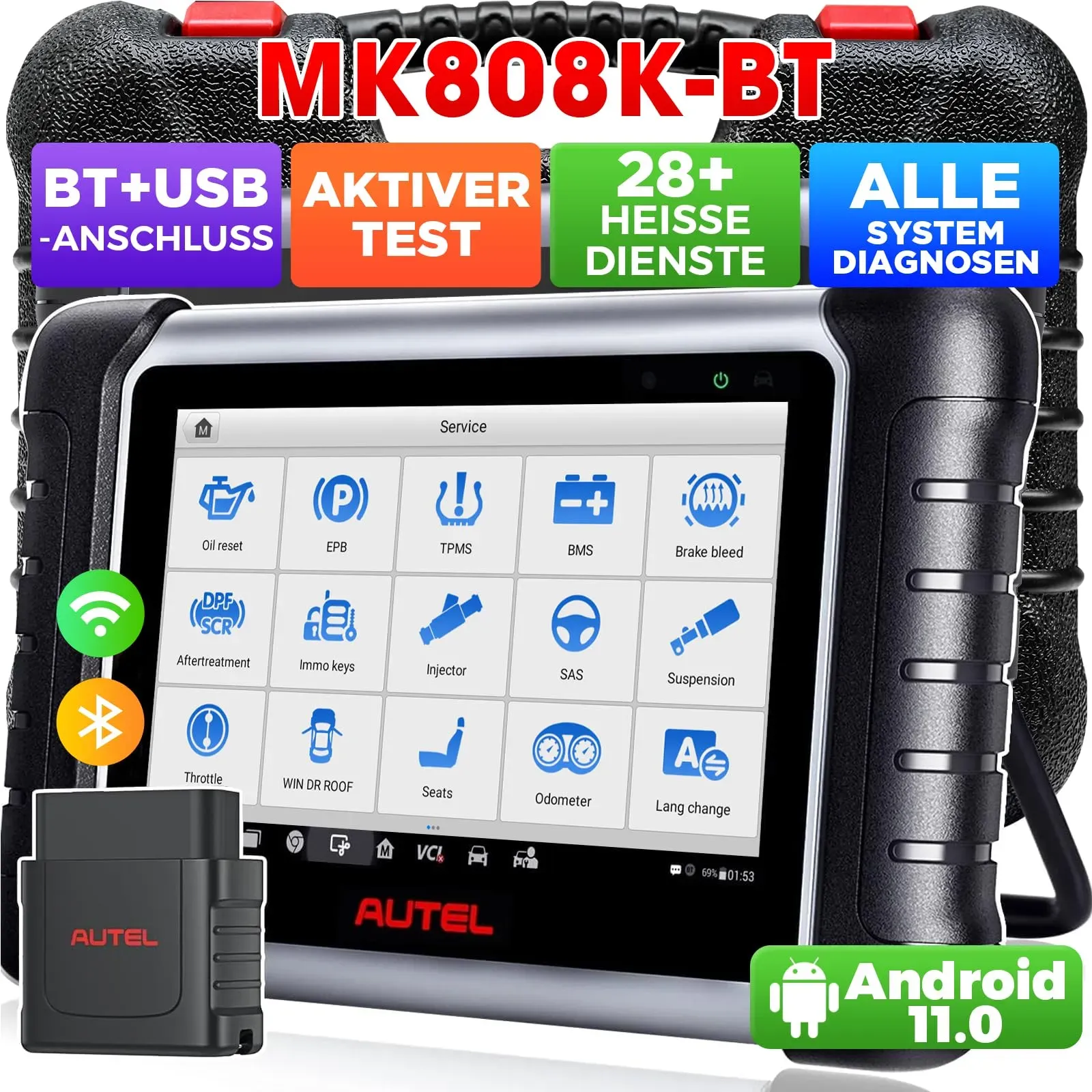 Verfügbarkeit: Auf Lager - Kategorie: Sonstiges Autozubehör - Autel - GTIN:0680666200305 - ð¥ð¥ð¥2025 Aktualisierte Hardware und SoftwareIn Bezug auf Funktionen MK808K-BT = MK808BT-PRO, MK808Z-BT, MX900, und Autel MaxiCOM MK808K-BT ist ein verbesserter obd2 diagnosegerät auto von MX808S MK808BT MK808S, und es hat die erheblich verbessert. Material und Abdeckung. Fahrzeug, der leistungsstarke ROCKCHIP RK3566-Prozessor, aktualisiert 5 x schneller Android 11, größter 4 GB RAM + 64 GB ROM, 5G WiFi (33 ft Bluetooth Wireless), Batterietest, aktiver Test, 28+ Service, vollständige Systemdiagnose und vollständige OBD2-Funktionen, um alle Ihre täglichen Reparaturbedürfnisse zu decken. ð¥ð¥3000+ aktive Tests, um Zeit und Geld zu sparenWas würden Sie tun, wenn das Rücklicht nicht mehr funktioniert? Ersetzen oder viel Geld ausgeben, um es zu reparieren? Autel MaxiCOM MK808K-BT kfz diagnosegerät unterstützt mehr als 3000 aktive Tests, was Ihnen einen hohen Komfort bei der Problemlokalisierung durch schnelle Befehle und reaktionsschnelle Aktionen des Autos bietet und Ihnen Zeit und Geld spart, um die Probleme des Autos zu finden. Mehr als 3000 aktive Tests (wie Fenster, Türen, Lichter usw.) decken 99% der Fahrzeugmodule ab. Basierend auf einem stabilen Mini-VCI reichen 5 Minuten aus, um die beteiligten Stellantriebe zu überprüfen. 28+ Warme Services, 99% AbdeckungWarum ist unser Diagnose- und Wartungswerkzeug für Autos anderen ... Die kabellose Version des MK808S/MX808S bietet zusätzliche Flexibilität und Komfort bei der Diagnose. ![]() ![]() Autel MaxiCOM MK808BT PRO OBD2 Diagnosegerät Auto, 2025 Wireless Ver. von MK808S/ MK808/ MX808S, Bidirektional wie MK900/ MK900BT/ MK808BT Diagnosegerät, Aller Systeme, 28+ Service, Funktion mit BT506