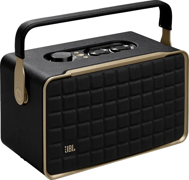 Auf Lager Versand durch AmazonJBL Authentics 300 Tragbarer Smart Home Lautsprecher ? 70er Jahre Retro-Design Bluetooth Box ? Mit Google Assistant, Alexa, AirPlay und JBL One App ? Schwarz