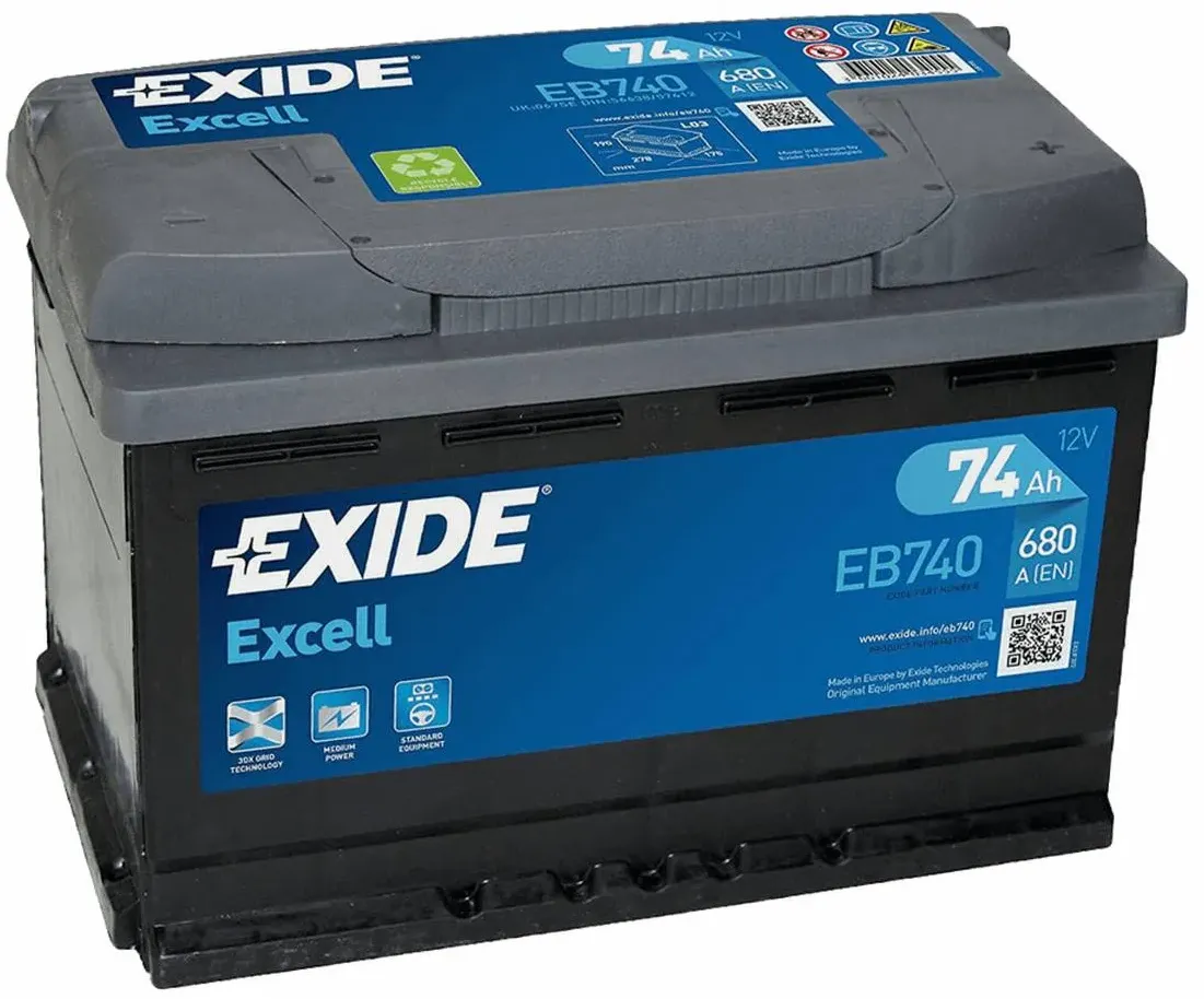 Sofort versandfertig, Lieferzeit 1-3 TageExide EB740 Excell 12V 74Ah 680A Autobatterie