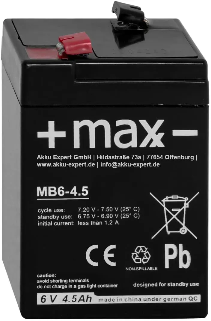 Zustand: Neu - Autobatterien - DSK - 10318 - EAN: 8420738103187 - DSK Wiederaufladbare AGM-Bleibatterie, ideal für Hausalarme, elektrisches Spielzeug, Mobilitätsgeräte, Zäune, Waagen. Die Batterie wird versiegelt geliefert und der Endbenutzer kann damit nicht umgehen DSK Bleibatterie Technische Merkmale Nennspannung 6 V//Ampere Stunde 1,3 Ah//Länge 97 mm//Breite 97 mm//Höhe 55 mm Die Batterie der Marke DSK hohe Qualität gewährleistet den ordnungsgemäßen Einsatz in Sicherheitssystemen, elektrischem Spielzeug, Elektromobilitätsgeräten DSK Die Blei-Säure-Batterie hat werkseitig die umfassendsten Prüfungen bestanden, um eine hervorragende Leistung sicherzustellen. Wiederaufladbarer Akku mit langer Lebensdauer DSK hat mehr als 2 auf dem Batteriemarkt. Unsere Geschichte und Erfahrung ermöglichen es uns, eine breite Palette von Batterien für alle vom Kunden gewünschten Lösungen anzubieten, die eine hohe Kundenzufriedenheit bieten. - bei Amazon.de Dieser 4,5Ah 6V Akku ist eine gute und preiswerte Option für Kinderautos. ![]() ![]() 4,5Ah 6V Akku passend für Kinderauto IJ6-2.8 IJ6-3 IJ6-4 IJ6-4.2 IJ6 AGM Blei