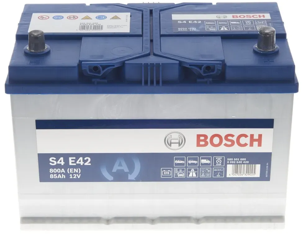 Verfügbarkeit: Auf Lager - Kategorie: Autobatterien - YUASA - GTIN:5050694029240 - SPEZIFIKATIONEN 12V SMF Hochleistungsbatterie Kapazität 85Ah Startleistung (CCA) 760 Ampere Größe (mm) 317 x 175 x 190 Gewicht (kg):20,8 Messingklemmen (Typ 1) zur Verbesserung der Leitfähigkeit und Optimierung der Gesamtleistung der Batterie. Bis zu 270.000 Motorstarts: Liefert beeindruckende Langlebigkeit und bietet bis zu 270.000 Motorstarts für zuverlässige Leistung. Entwickelt für fortschrittliche Fahrzeugtechnologie: Speziell für Fahrzeuge entwickelt, die mit fortschrittlichen Funktionen wie Start-Stop-Systemen ausgestattet sind. LITHIUM CARBON ADDITIVE: Encorporates lithium carbon additives for enhanced charge acceptance and improved overall performance. REDUZIERTER KRAFTSTOFFVERBRAUCH & GERINGERE EMISSIONEN - Unterstützt umweltfreundliches Fahren mit verbesserter Kraftstoffeffizienz und reduzierten Emissionen. - 136,79 Euro bei Amazon Marketplace Automotive - gefunden von billiger.de Die Bosch S4E42 mit EFB-Technologie ist eine gute Option für Fahrzeuge mit Start-Stopp-Funktion und bietet eine verbesserte Zyklenfestigkeit. ![]() ![]() Autobatterie BOSCH S4E42 12V 85Ah 800A B01 0 092 S4E 420 EFB-Technologie