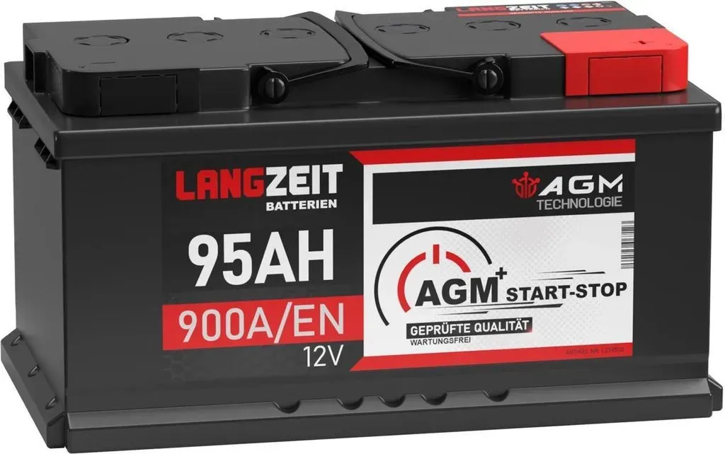 Verfügbarkeit: 1-2 Werktage - Kategorie: Autobatterien - Continental - GTIN:4103590699947 - CONTINENTAL EFB 12V, 95 Ah, 850 A Perfekt für Fahrzeuge mit Start-Stopp-System: Continental Start-Stopp-Batterien sind echte Premiumprodukte und zeichnen sich durch moderne Hochleistungstechnik aus. Ob überzeugende EFB- oder fortschrittlichste AGM-Technologie €“ sie liefern immer erstklassige Qualität.Gewicht [kg]:23,6 kg Höhe [mm]:190 mm Bodenleistenausführung B13 Spannung [V]:12 V Batterie-Kapazität [Ah]:95 Ah Kälteprüfstrom EN [A]:850 A Batterie:EFB-Batterie Polanordnung 0 Vorgaben des Fahrzeugherstellers beachten Ergänzungsartikel/Ergänzende Info 2:Steuergerät/Software muss angelernt/upgedatet werden Länge [mm]:353 mm Breite [mm]:175 mm , u.a. für Renault Master III (FV), 77 PS (57 kW), ab 3/2018, KBA-Nr: 3333BIDRenault Master III (EV, HV, UV), 77 PS (57 kW), ab 3/2018 , OE-Nummer:VARTA:595500085K262VARTA:595500085D842BOSCH:0 092 S4E 130VARTA:595 500 085 - 130,50 Euro bei kfzteile24.de - gefunden von billiger.de Diese LANGZEIT AGM Batterie ist eine preiswerte Option für Fahrzeuge mit Start-Stopp-System, die eine gute Leistung für den täglichen Gebrauch bietet. ![]() ![]() LANGZEIT Batterien AGM Batterie 95Ah 12V Autobatterie Start Stop
