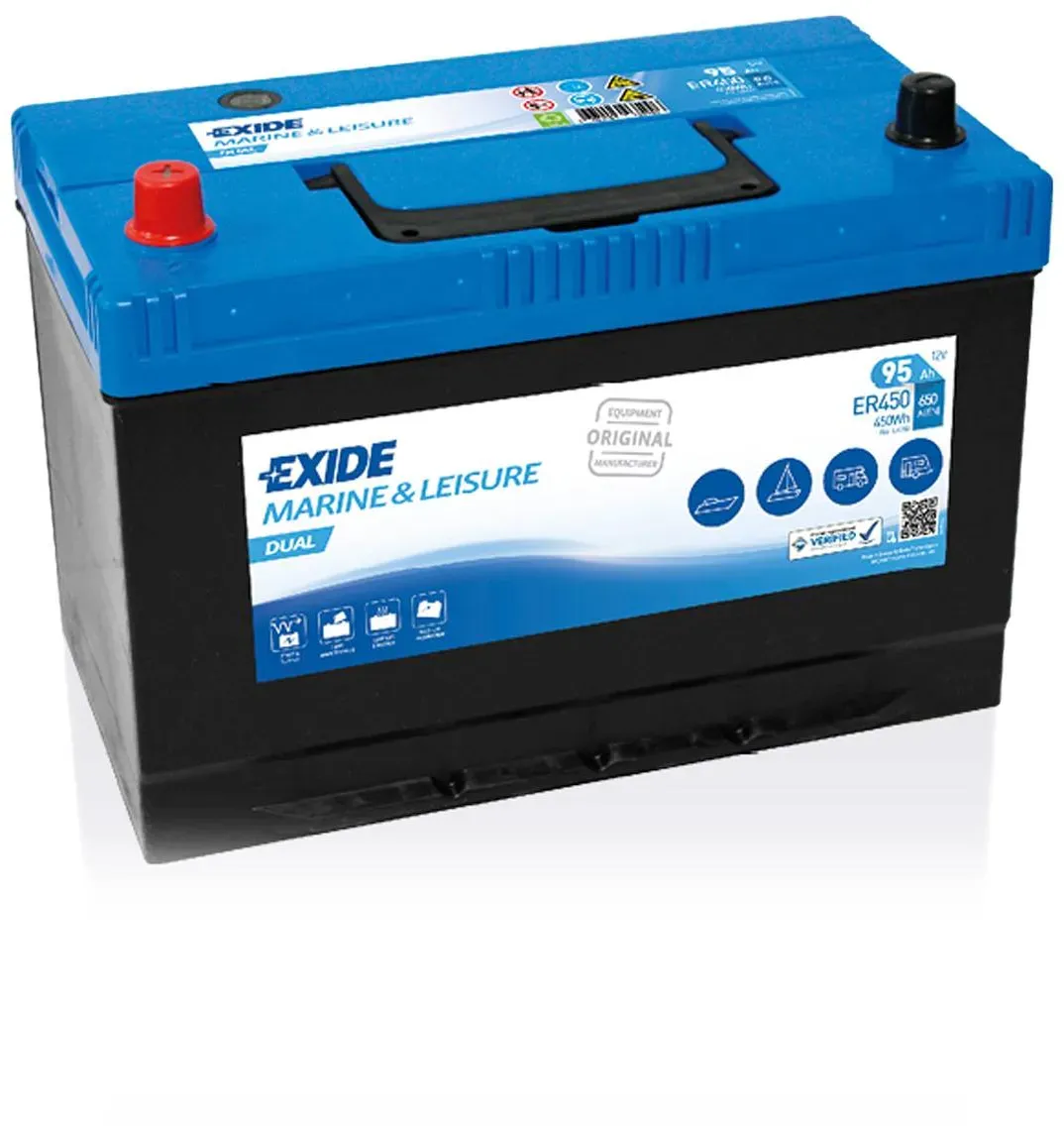 Verfügbarkeit: Sofort versandfertig, Lieferzeit 1-3 Tage - Kategorie: Autobatterien - Varta - GTIN:4016987167700 - VARTA G7 Blue Dynamic 12V 95Ah 830A Autobatterie 595 404 083Die G7 wird von Varta hergestellt. Varta Blue Dynamic Batterien wie die G7 sind unter den meistverkauften Batterien in Europa und sehr vielseitig. Sie eignen sich sehr gut für alle Kleinwagen und Fahrzeuge der Mittelklasse, aber auch PKW mit gehobener Ausstattung sind mit Blue Dynamic Batterien gut bedient. Die Batterie ist 306 mm lang, 173 mm breit und 225 mm hoch. Der Kaltstartstrom beträgt 830 A. Je größer dein Motor ist, desto mehr Startstrom brauchst du.Sichere Kapazität von 95 AhDie G7 besitzt eine Kapazität von 95 Ah. Dieser We... - 107,91 Euro bei AUTOBATTERIE MARKT - gefunden von billiger.de Die Exide ER450 Dual ist eine vielseitige Batterie, die sowohl als Starter- als auch als Versorgungsbatterie genutzt werden kann, ideal für Wohnmobile oder Fahrzeuge mit zusätzlichen Verbrauchern. ![]() ![]() Exide ER450 Dual Versorgungsbatterie Starterbatterie 12V 95Ah 450Wh