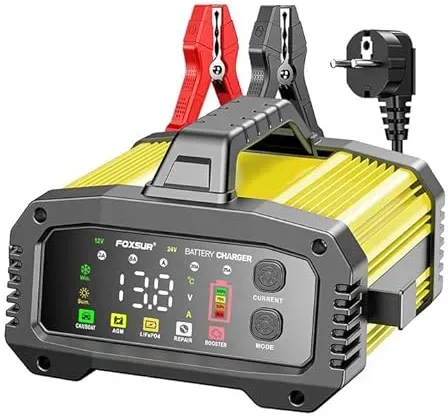 Zustand: Neu - Ladegeräte Ladegeräte für Autobatterien - Oamger - QD0267 - EAN: 8080316203618 - 8-stufiger Ladevorgang: Schonenderes Laden der Batterie durch 8-stufigen Ladevorgang. Stufe 1: Entschwefelung der Batterie, Stufe 2: Sanftanlauf, Stufe 3: Konstantladung, Stufe 4: Absorptionsladung, Stufe 5: Batterietest, Stufe 6: Laden, Stufe 7: Erhaltungsladung und Erhaltungsladung, Stufe 8: Wiederaufladung bei entladener Batterie. Geeignet für verschiedene Batterietypen wie Blei-Säure-, AGM-, Kolloid-, EFB- und zyklenfeste Batterien.Stellt sicher, dass jede Batterie den besten Ladeeffekt erzielt. BOOSTER-Modus für sorgenfreien Notstart: Der für 12V/24V-Batterien entwickelte BOOSTER-Modus liefert im Notfall bis zu 200 Sekunden maximale Stromabgabe und unterstützt so den Fahrzeugstart. Nach 200 Sekunden zeigt das Display ON an und signalisiert so die Startbereitschaft. Diese Funktion eignet sich hervorragend, um die Startfähigkeit des Fahrzeugs bei schwacher Batterie schnell wiederherzustellen. Robustes Design, effiziente Wärmeableitung: Das Gehäuse aus Aluminiumlegierung ist hitze- und korrosionsbeständig und bietet hervorragenden Schutz. Der eingebaute Kupfermotor und der Lüfter sorgen auch nach längerem Laden für einen niedrigen Betriebstemperaturbereich und vermeiden so Überhitzungsprobleme. Dieses Design verlängert nicht nur die Lebensdauer des Geräts, sondern sorgt auch für einen leisen und komfortablen Betrieb. Mehrere Ladestromoptionen für vielfältige Anforderungen: ... ![]() ![]() 15A-25A LiFePO4 - Autobatterie Ladegerät,12V eBay 24V Intelligentes Batterieladegerät