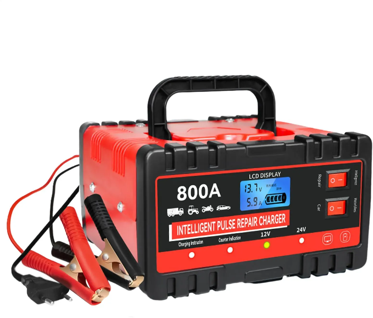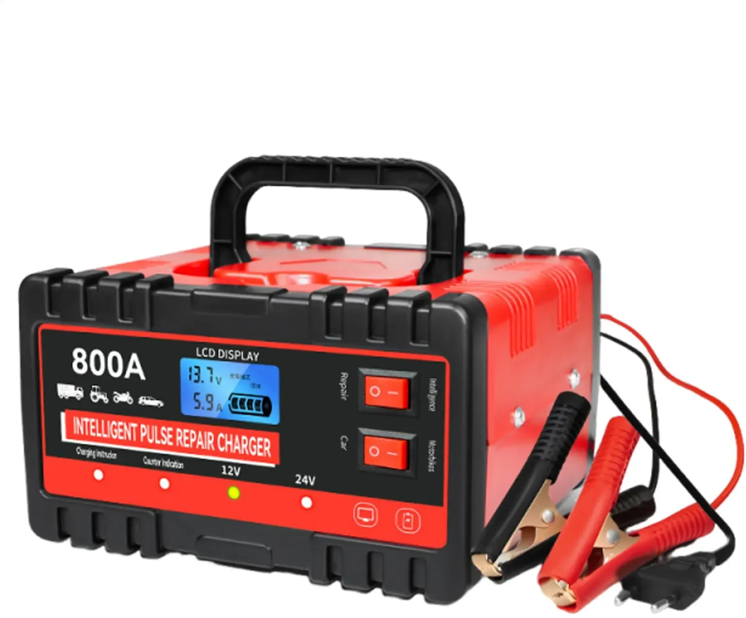 Werkzeug Autozubehör Pannenhilfe und Erste Hilfe Starthilfe und Überbrückungskabel Autoteile, Zubehör und Styling - EAN:4891684656654 - Mehrfacher SicherheitsschutzLadegerät verfügt über mehrere Sicherheitsfunktionen: feuerbeständige Blume, Unterspannungsschutz, Überspannungsschutz, Überstromschutz, Verpolungsschutz, Kurzschlussschutz, Überlastschutz bei Überhitzung, ren Ihre Sicherheit. Das intelligente Ladegerät enthält einen Lüfter, der eine Überhitzung während des Ladevorgangs verhindert und die Lebensdauer des Autoladegeräts verlängert. Intelligentes LCD-DisplayDas Ladegerät erkennt automatisch die aktuelle Spannung und erfordert keine manuelle Bedienung. Das Display kann Spannung, Strom, Batteriekapazität, Temperatur usw. anzeigen. Es ist möglich, den Ladezustand der Batterie zu ermitteln. Beim Laden dient der rote Clip zum Befestigen der schwarzen Plusbatterie (+) und der Clip zum Befestigen der Minusbatterie (-). Stoppt automatisch, nachdem der Ladevorgang abgeschlossen ist. VerwendungsweiseGeeignet für Blei-Säure-Batterien, Batterien für 12 V 6-150 Ah,24V 6-100AH(Hauptversammlung, GEL, WET, SLA, - gefunden von Kelkoo ![]() ![]() Huzoomtoyz 10A Autobatterieladegerät 12V /24V Intelligentes KFZ Batterieladegerät mit Ladung LCD-Display für Auto, LKW, Motorrad, Boot Kompatibel mit Blei-Säure AGM EFB LiFePO4 Batterien