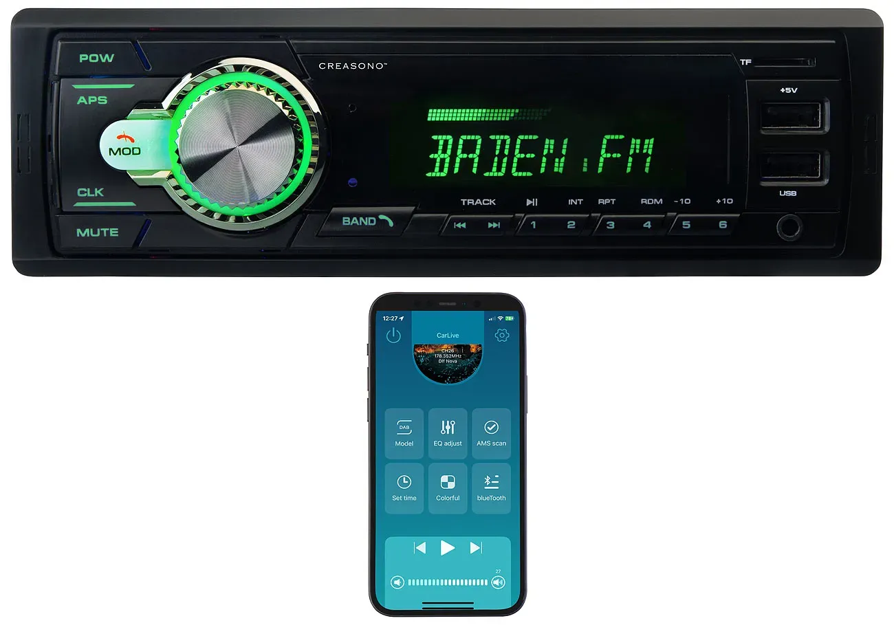 Kategorie: Autoradios - Creasono - GTIN:4022107435765 - Vielseitige Musikquellen und komfortable Freisprechfunktion für jede Fahrt Flexible Musikwiedergabe für jede Fahrt: Mit Ihrem neuen Autoradio haben Sie jederzeit die Wahl zwischen kristallklarem Digitalradio, klassischen FM/UKW-Sendern oder Ihrer eigenen Musiksammlung. Spielen Sie Ihre Lieblingssongs bequem von USB-Stick oder microSD-Karte ab. Streamen Sie sie per Bluetooth direkt von Ihrem Smartphone oder analog per Klinkenkabel von Ihrem MP3-Player. So wird Ihnen auch auf langen Fahrten nicht langweilig. Sicher telefonieren, auch während der Fahrt: Dank des integrierten Mikrofons können Sie während der Fahrt sicher telefonieren, ohne Ihr Smartphone in die Hand zu nehmen. Behalten Sie beide Hände am Lenkrad und bleiben Sie trotzdem immer erreichbar. So führen Sie wichtige Gespräche entspannt und vorschriftsmößig - und behalten dabei die volle Kontrolle über Ihr Fahrzeug. Individuelles Display-Design in 7 Farben: Passen Sie das Display Ihres Geräts nach Ihren Vorlieben an. Wählen Sie aus sieben verschiedenen Farben, um Ihrem Radio einen persönlichen Touch zu verleihen. Zusätzlicher Subwoofer-Anschluss: Für Musikliebhaber, die tiefere Bässe bevorzugen, bietet dieses Gerät einen Anschluss für einen externen Subwoofer. So kommt Ihre Musik noch kraftvoller zur Geltung. Steuerung per kostenloser App: Ihr Autoradio kann auch per App gesteuert werden. übergeben Sie die Steuerung so bequem an Ihre Mitfahrer - selbst die auf ... Ein äußerst günstiges Modell, das DAB+ und Bluetooth-Freisprecheinrichtung bietet und somit ein gutes Preis-Leistungs-Verhältnis für Basisfunktionen darstellt. ![]() ![]() Renkforce RF-4746690 Autoradio inkl. DAB-Antenne, DAB+ Tuner, Bluetooth -Freisprecheinrichtung