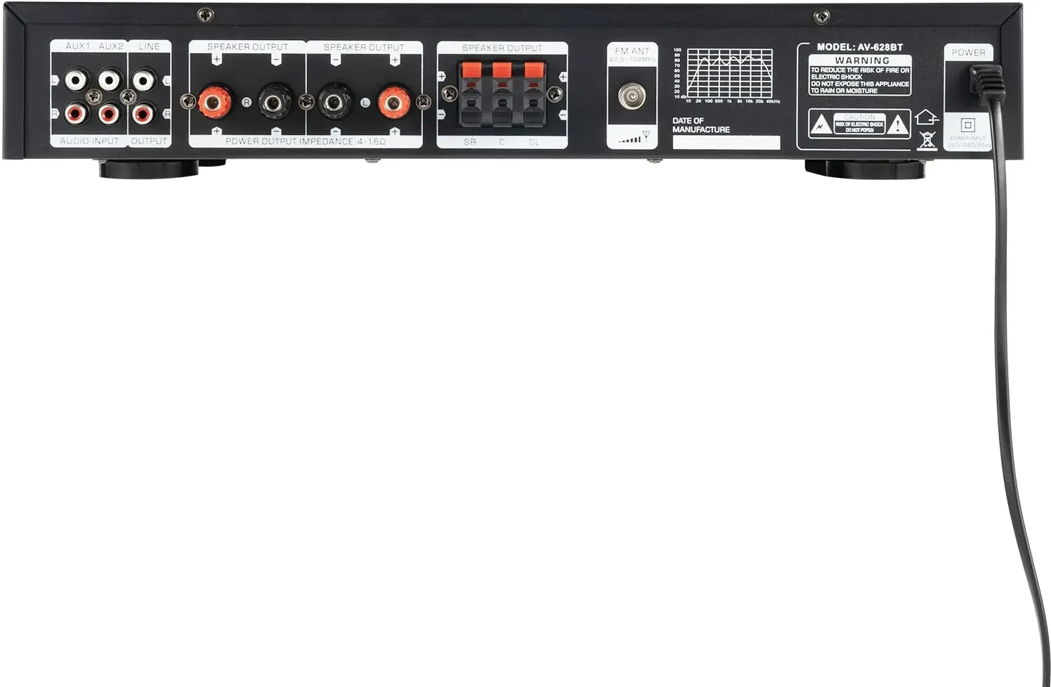 Ton Endstufen, Verstärker Endstufen Mehrkanal Verstärker & Empfänger - EAN:8715693333701 - Der AV550BT ist ein leistungsstarker 5.1-Surround-Verstärker, der mit BT-, FM-Radio-, USB- und SD-Kartensteckplätzen ausgestattet ist. Dieses vielseitige System eignet sich dank der beiden Mikrofoneingänge mit Echo-Kontrolle an der Vorderseite auch für Karaoke-Anwendungen. Das AV550BT verfügt über fünf Kanäle zur Unterstützung aller Lautsprecher, die Sie für das ultimative Surround-Sound-Erlebnis benötigen, sowie über mehrere Ein- und Ausgänge für Ihre Audiogeräte und -anlagen. Spielen Sie Titel direkt von einer USB- oder SD-Karte ab, stellen Sie eine kabellose Verbindung zu Ihrer digitalen Bibliothek über BT her oder hören Sie mit dem FM-Radiotuner Ihre Lieblingssender in Surround-HiFi-Sound.5.1-Kanal-Receiver-System, Ausgangsleistung: Vorne 2x 100W, Mitte 60W und hinten oder Surround 2x 30W, MP3-Player mit USB-Anschluss/SD-Kartenleser, Digitale LED-Anzeige, BT 5.0-Empfänger für kabelloses Audio-Streaming, Center- und Surround-Lautstärkeregler, Beleuchteter Lautstärkeknopf, Aluminium-Bedienfeld an der Vorderseite, Doppelter Mikrofoneingang mit Lautstärke-, Klang- und Echoregelung, Stereo-Line-Eingänge (RCA), Subwoofer-Ausgang (RCA), Inklusive Fernbedienung, Technische Daten: Wiedergabemöglichkeiten: BT-Streaming, FM-Radio, SD, USB, Eingangsanschlüsse: 6,3 mm Klinke, RCA, SD, USB, Ausgangsanschlüsse: RCA, Lautsprecheranschlüsse: Clip-Klemme, Lautsprecher-Schraubklemme, ... Der Pyle Verstärker ist eine vielseitige und leistungsstarke Option mit 1000W und 5.2 Kanälen, inklusive Mikrofonen für Karaoke. ![]() ![]()