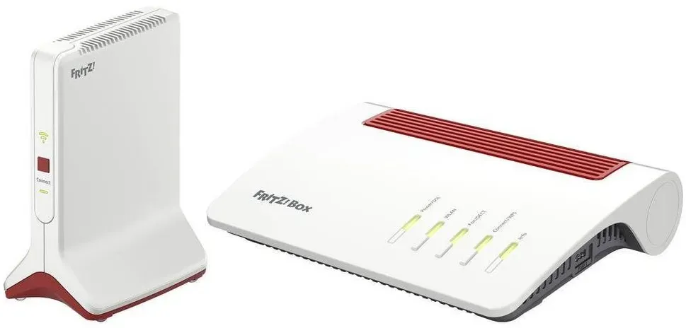 5.99 € lieferbar-in 5-6 Werktagen bei dirAVM AVM FRITZ!Box 7590 AX + FRITZ!Repeater 6000 WLAN-Router weiß