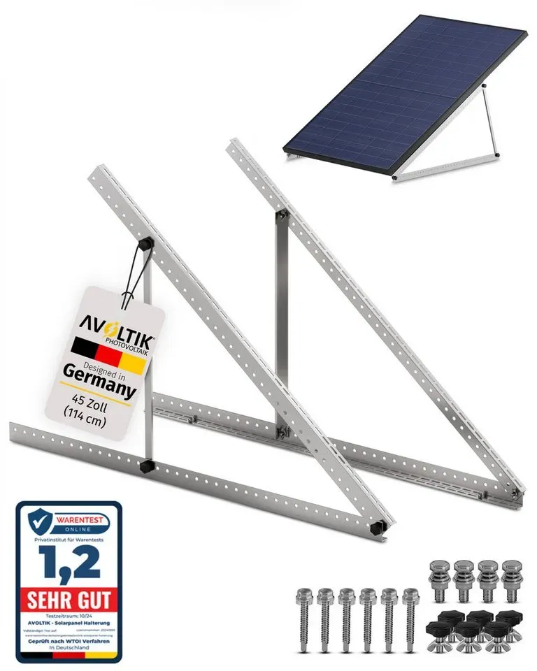 Um die beste Option für Ihre Bedürfnisse zu finden, empfehle ich, den Standort und die Größe Ihrer PV-Anlage zu berücksichtigen[11]. Für einen Preisvergleich können Sie direkt im Meta-Preisvergleich nach Avoltik Solarpanel Halterung suchen. Jetzt live Suche nach avoltik solarpanel halterung starten! Empfohlene Avoltik solarpanel halterung Angebote*Durch Käufe über Links zu Händlern kann diese Website eine Provision erhalten, u.a. durch das eBay Partner Network und das AmazonPartnerNetHier ist eine Auswahl von 15 repräsentativen und empfehlenswerten Avoltik Solarpanel Halterungen, die verschiedene Preisbereiche und Anwendungsarten abdecken: Diese einzelne Alu-Aufständerung ist eine kostengünstige und robuste Option für die Befestigung eines einzelnen Solarmoduls. ![]() ![]()