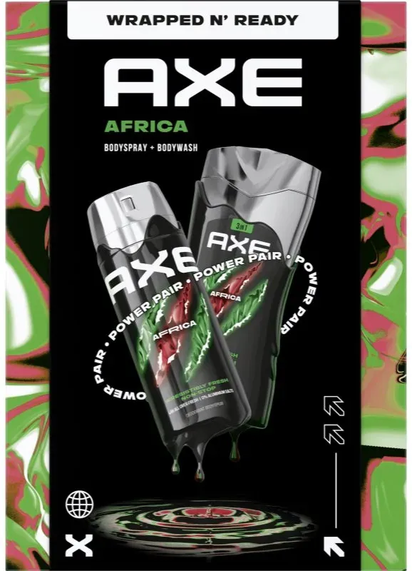 Kategorie: Deodorants - Axe - GTIN:8712561249096 - 3x Axe Men Deodorant/Bodyspray 'Africa - Geranium & Vanilla Scent' - 150ml - 17,70 Euro bei Amazon Marketplace Beauty - gefunden von billiger.de Dieses Geschenkset mit Bodyspray und Duschgel ist eine praktische Kombination für den Start. ![]() ![]() AXE Geschenkset Bodyspray + Duschgel Africa (150 ml + 250 ml)