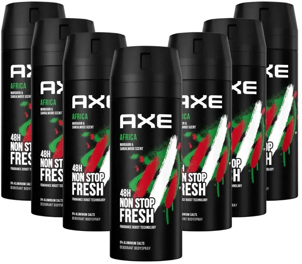15.8 / l - Kategorie: Dusch- & Badeartikel - Axe - GTIN:8712561190480 - Axe Men Duschgel Africa 6er Pack (6 x 250 ml) - 23,70 Euro bei Amazon Marketplace Beauty - gefunden von billiger.de Dieses 7er Pack Bodyspray ohne Aluminiumsalze ist eine gute Wahl für empfindliche Haut und langanhaltenden Schutz. ![]() ![]() AXE Bodyspray Africa Deospray mit 48H Schutz gegen Körpergeruch ohne Aluminiumsalze - 7 Stück