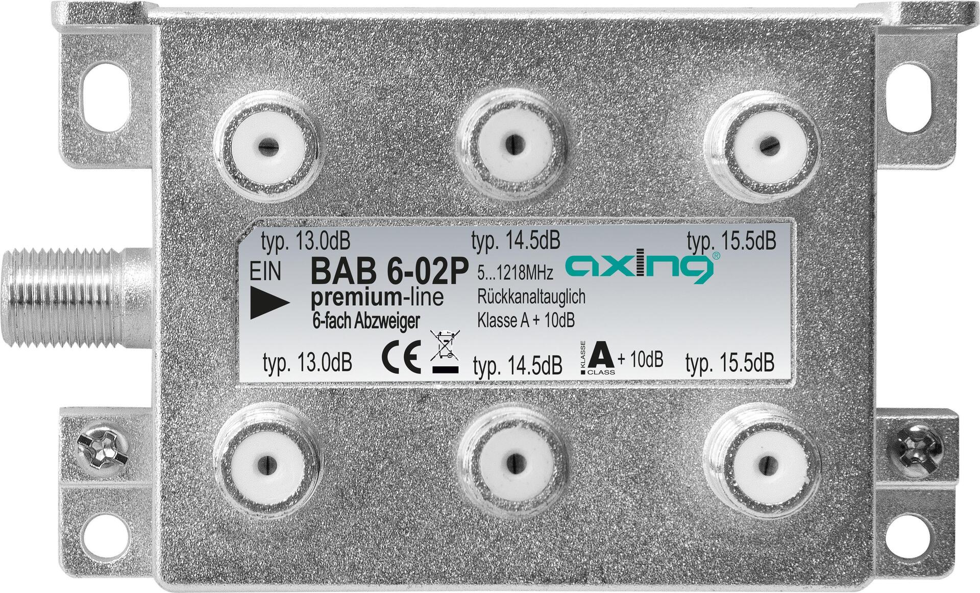 Zustand: Neu - Verteiler Satelliten-Verteiler - Axing - BAB00602P BAB 6-02P - EAN: 7611682006346 - Flexible Gestaltung Qualität/Haltbarkeit Langlebigkeit - bei Amazon.de ![]() ![]() Axing Kabel-TV Abzweiger (Verteiler und Abzweiger) (BAB 6-02P)