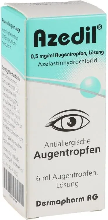 24 Händlerangebote bei billiger.de - Kategorie: Arzneimittel - axicur - Anwendungsgebiet von Azedil 0,5 mg/ml Augentropfen LösungAzedil 0,5 mg/ml Augentropfen Lösung Azedil kann zur Behandlung und Vorbeugung von durch Heuschnupfen bedingten Beschwerden am Auge (saisonale allergische Konjunktivitis) bei Erwachsenen, Jugendlichen und Kindern ab n angewendet werden.Azedil kann zudem auch zur Behandlung von durch Allergien auf Substanzen wie zum Beispiel Hausstaubmilben und Tierhaare bedingten Beschwerden am Auge (perenniale allergische Konjunktivitis) bei Erwachsenen und Jugendlichen ab 1 n angewendet werden. Wirkungsweise von Azedil 0,5 mg/ml Augentropfen LösungAzedil 0,5 mg/ml Augentropfen Lösung enthält den Wirkstoff Azelastin. Azelastin gehört zu einer Gruppe von Arzneimitteln die als Antihistaminika bezeichnet werden. Antihistaminika verhindern die Wirkungen von Substanzen (wie z.B. Histaminen), die vom Körper im Zusammenhang mit einer allergischen Reaktion produziert werden. Es wurde gezeigt, dass Azelastin eine Entzündung am Auge reduzieren kann.Wirkstoffe / Inhaltsstoffe / ZutatenAzedil 0,5 mg/ml Augentropfen Lösung enthalten als Wirkstoff Azelastinhydrochlorid: 1 ml Lösung enthält 0,5 mg Azelastinhydrochlorid. Jeder Tropfen enthält 0,015 mg Azelastinhydrochlorid. Die sonstigen Bestandteile sind: Benzalkoniumchlorid, Natriumedetat (Ph.Eur.), Hypromellose 4000, Sorbitol Lösung 70 % (kristallisierend) (Ph.Eur.), Natriumhydroxid zur pH-Einstellung und Wasser für ... Dieses Angebot ist mit 7.39 Euro eine gute Option für Vividrin Azelastin Nasenspray. ![]() ![]() Bausch + Lomb VIVIDRIN Azelastin 1 mg/ml Nasenspray Lösung 10 ml