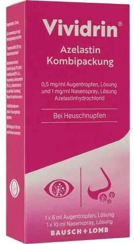 Zustand: Neu - 13,44 € / stück - Allergien Medikamente bei Allergien - Vividrin - 17585565 - - Wirkstoff: Azelastin zur Linderung von Allergien Kombipackung zur gezielten Anwendung apothekenpflichtiges Arzneimittel Hersteller: Dr. Gerhard Mann Chem.-pharm.Fabrik GmbH, Deutschland (Originalprodukt aus Deutschland) - 11 Händler im amazon.de Marketplace Diese Allergodil akut Duo Kombipackung ist eine praktische Lösung für die gleichzeitige Behandlung von Augen- und Nasenallergien. ![]() ![]() Allergodil akut Duo: Allergie Kombipack mit Nasenspray (10 ml) und Augentropfen (4 ml), Antiallergikum mit Azelastinhydrochlorid