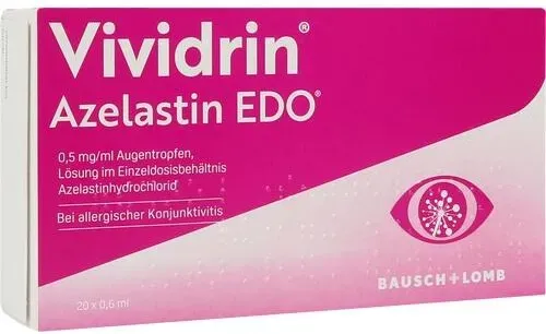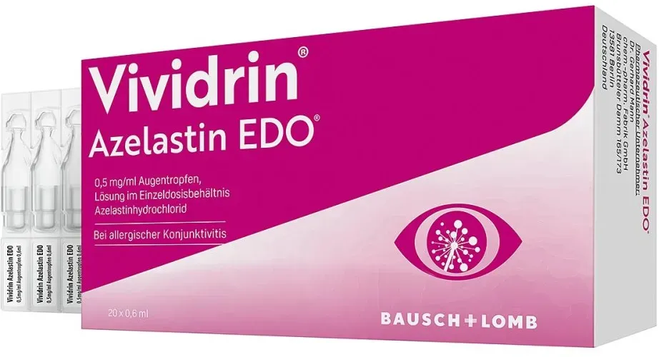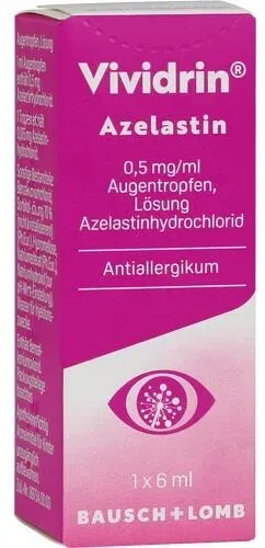131.50 / 100 ml - Kategorie: Arzneimittel - Bausch + Lomb - GTIN:4150129105462 - PZN:12910546 - Verfall: 04/2026 - 7,89 Euro bei ayvita.de - gefunden von billiger.de Ein weiteres Vividrin Azelastin EDO Produkt, das eine bequeme und hygienische Anwendung für Augenallergien bietet. ![]() ![]() Bausch + Lomb Vividrin Azelastin EDO Akuthilfe bei Heuschnupfen und Allergien