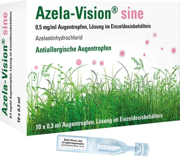 22 Händlerangebote bei billiger.de - Kategorie: Arzneimittel - OmniVision - Anwendungsgebiet von Azela-Vision sine 0,5 mg/ml Augentropfen i.Einzeldosis.Azela-Vision sine 0,5 mg/ml Augentropfen i.Einzeldosis. beinhaltet Azelastin, ein Arzneimittel aus der Gruppe der sogenannten Antihistaminika. Die Wirkungsweise von Antihistaminika besteht im Schutz vor den Wirkungen von Substanzen wie Histamin. Diese bildet der Körper bei einer allergischen Reaktion. Azelastin erweist sich auch zur Linderung von Augenentzündungen.Azela-Vision sine 0,5 mg/ml Augentropfen i.Einzeldosis. kann bei Erwachsenen und Kindern ab n zur Behandlung und Vorbeugung von Augenbeschwerden aufgrund von Heuschnupfen (saisonale allergische Bindehautentzündung) angewendet werden. Das Präparat wird bei Erwachsenen und Kindern ab 1 n zur Behandlung und Vorbeugung von Augenbeschwerden aufgrund von Allergien gegen z. B. Hausstaubmilben oder Hunde- und Katzenhaare (ganzjährige allergische Bindehautentzündung) eingesetzt. Azela-Vision sine 0,5 mg/ml Augentropfen i.Einzeldosis. ist frei von Konservierungsmitteln.Wirkstoffe / Inhaltsstoffe / ZutatenAzela-Vision sine 0,5 mg/ml Augentropfen i.Einzeldosis. enthält: Der Wirkstoff ist Azelastinhydrochlorid (0,5 mg/ml). Ein Tropfen (30 l) enthält 0,015 mg Azelastinhydrochlorid. Die sonstigen Bestandteile sind: Sorbitol-Lösung 70% (kristallisierend) (Ph.Eur.), Hypromellose, Natriumdetat (Ph.Eur.), Natriumhydroxid-Lösung (zur pH-Wert Einstellung) und Wasser für ... Dieses Allergodil akut Nasenspray ist eine kostengünstige Lösung für die schnelle Linderung von Nasenallergien. ![]() ![]() Meda Pharma GmbH & Co. KG Allergodil akut Nasenspray mit Azelastin gegen Heuschnupfen