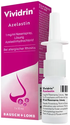 24 Händlerangebote bei billiger.de - Kategorie: Arzneimittel - URSAPHARM Arzneimittel - Anwendungsgebiet von Pollival 1 mg/ml Nasenspray LösungPollival 1 mg/ml Nasenspray Lösung enthält den Wirkstoff Azelastin, der zu einer Gruppe von Arzneimitteln, den sogenannten Antihistaminika, gehört. Antihistaminika wirken, indem sie vor den Effekten von Histamin schützen, die der Körper als Teil einer allergischen Reaktion produziert. Das Nasenspray wird zur symptomatischen Behandlung von Heuschnupfen (saisonale allergische Rhinitis/ allergischer Schnupfen), Allergien allgemein und/oder bei allergischen Fließschnupfen. Pollival 1 mg/ml Nasenspray Lösung ist für Erwachsene und Kinder ab n geeignet.Wirkstoffe / Inhaltsstoffe / ZutatenInhaltsstoffe von Pollival 1 mg/ml Nasenspray Lösung: 0.14 mg Azelastin hydrochlorid0.13 mg AzelastinCitronensäure, wasserfrei Hilfstoff (+)Dinatrium edetat 2-Wasser Hilfstoff (+)Dinatrium hydrogenphosphat 12-Wasser Hilfstoff (+)Hypromellose Hilfstoff (+)Natrium chlorid Hilfstoff (+)Wasser, gereinigt Hilfstoff (+)GegenanzeigenPollival 1 mg/ml Nasenspray Lösung darf nicht angewendet werden, wenn Sie allergisch gegen Azelastin oder einen der sonstigen Bestandteile dieses Arzneimittels sind. Das Nasenspray darf nicht bei Kindern unter n angewendet werden. Für Jugendliche gelten die gleichen Anwendungsempfehlungen, wie für Erwachsene.DosierungAnwendungsempfehlung von Pollival 1 mg/ml Nasenspray Lösung: Die empfohlene Dosis beträgt zweimal täglich (morgens und ... Dieses Angebot ist mit 6.28 Euro eine günstige Option für Vividrin Azelastin Nasenspray. ![]() ![]() Bausch + Lomb Vividrin Azelastin 1 mg/ml Nasenspray Lösung