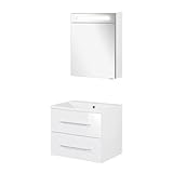 keine Angabe Nur noch 20 auf LagerFACKELMANN B.Clever 3-teiliges Möbel-Set ? Waschtischunterschrank, Gussmarmorbecken & Spiegelschrank mit LED, 60 cm, Weiß ? Made in Germany