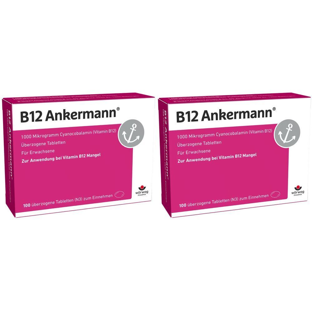 B12 Ankermann - EAN: 4150015027267 - B12 Ankermann Das B12. Müde und erschöpft war gestern. Dank der Nr. 1 bei Vitamin-B12-Mangel.** Mit der höchsten Dosierung von 1.000 Mikrogramm Vitamin B12 pro Tablette sorgt B12 Ankermann für eine wirksame Aufnahme in den Körper. 1* So gleicht es... - bei shop-apotheke.com - aus Yadore Produktdaten Ein weiteres solides Angebot für die überzogenen Tabletten von einer Beraterapotheke. ![]() ![]() Wörwag Pharma GmbH & Co.KG B12 Ankermann überzogene Tabletten 100 St 01502726_DBA