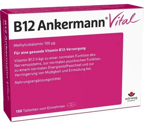 Kategorie: Nahrungsergänzungsmittel - B12 Ankermann - HOCHDOSIERT: Vitamin B12 Speicher mit B12 Ankermann Injekt 1000 g auffüllen und B12-Mangel induzierte Müdigkeit behandeln BIOVERFüGBARKEIT: durch die Verabreichung per Injektion ist eine hohe Bioverfügbarkeit gewährleistet. MüDIGKEIT BEHANDELN: durch B12 Ankermann Injekt 1000 g kann der B12-Spiegel im Blut schnell angehoben werden. EFFEKTIV: effektiv und schnell bei B12-Mangel Klassisches Arzneimittel aus der Apotheke (PZN-00097040). Zu Risiken und Nebenwirkungen lesen Sie die Packungsbeilage und fragen Sie Ihre ärztin, Ihren Arzt oder in Ihrer Apotheke. - 5,99 Euro bei Amazon Marketplace Health & Personal Care - gefunden von billiger.de Diese 50er-Packung Vital Tabletten ist eine preiswerte Option für Veganer, um den B12-Spiegel zu unterstützen. ![]() ![]() Wörwag Pharma B12 ANKERMANN Vital Tabletten 50 St