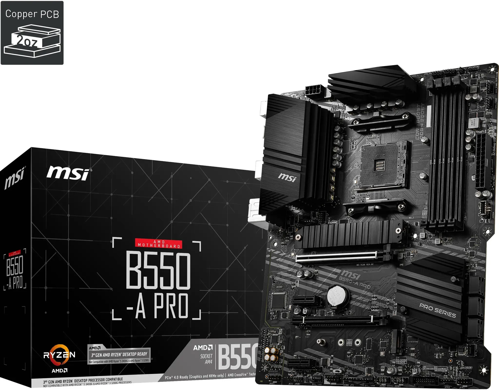 ATX Gesamtsortiment IT + Multimedia PC Komponenten Mainboard Motherboards - EAN:0889523024102 - Gigabyte B550-Motherboards maximieren das Potenzial Ihres PCs mit der AMD StoreMI-Technologie. StoreMI beschleunigt herkömmliche Speichergeräte, um die Startzeiten zu verkürzen und die Benutzererfahrung insgesamt zu verbessern. Dieses benutzerfreundliche Dienstprogramm kombiniert die Geschwindigkeit von SSDs mit der hohen Kapazität von HDDs in einem einzigen Laufwerk, verbessert die Lese- und Schreibgeschwindigkeit des Geräts auf das Niveau von SSDs, steigert die Datenleistung für einen unglaublichen Wert und verwandelt den alltäglichen PC in ein leistungsorientiertes System. Mit Smart Fan 5 können Benutzer sicherstellen, dass ihr Gaming-PC seine Leistung beibehält und gleichzeitig kühl bleibt. Smart Fan 5 ermöglicht es Benutzern, ihre Lüfter-Header auszutauschen, um verschiedene Wärmesensoren an verschiedenen Stellen auf der Hauptplatine zu reflektieren. Darüber hinaus wurden mit Smart Fan 5 weitere Hybrid-Lüfter-Header eingeführt, die sowohl PWM- als auch Voltage-Mode-Lüfter unterstützen, um die Flüssigkeitskühlung des Motherboards zu verbessern. - gefunden von Kelkoo Das MSI B550 A PRO ist eine beliebte Wahl für Business- und Produktivitäts-PCs, die eine stabile Leistung und gute Konnektivität benötigen. ![]() ![]() MSI B550 A PRO (AM4, AMD B550, ATX), Mainboard