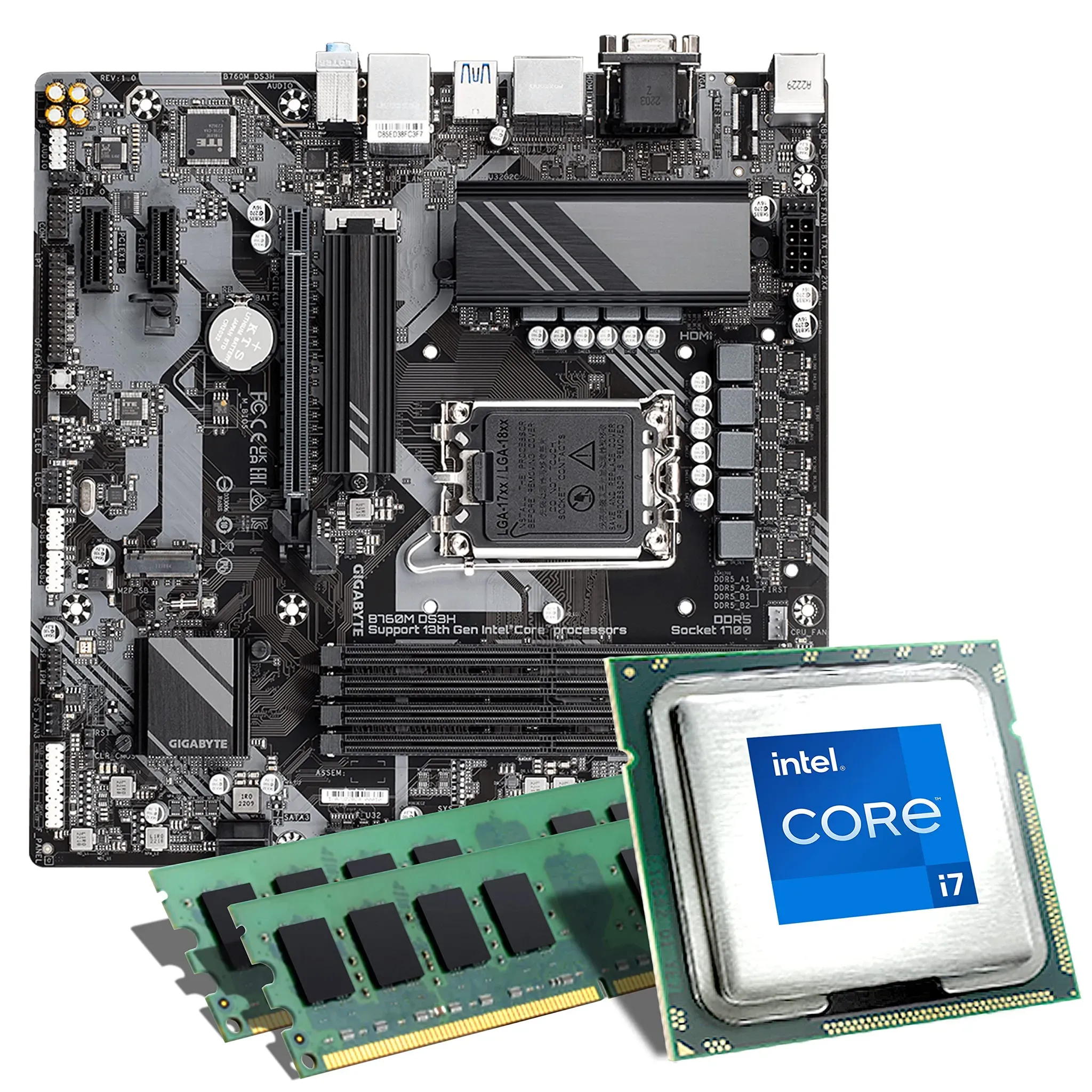 Mainboard mit CPU-Sockel Sockel 1700 Motherboards - EAN:4711387324547 - Das Mainboard ASUS TUF GAMING B760M-BTF WIFI basiert auf dem Intel R -B760-Chipsatz und unterstützt Intel R -Prozessoren für den Sockel 1700 der 13ten und 12ten Generation. Es verfügt über vier DDR5-DIMM-Slots im Dual-Channel-Betrieb für bis zu 192 GB Arbeitsspeicher. Zur weiteren Ausstattung des TUF GAMING B760M-BTF WIFI gehören ein PCIe-5.0-x16-Slot und ein PCIe-4.0-x16-Slot. Außerdem verfügt das TUF GAMING B760M-BTF WIFI über eine 2,5 Gigabit-LAN-Schnittstelle, vier SATA3-Anschlüsse, drei M.2-Anschlüsse (jeweils mit Unterstützung für PCIe 4.0 x4), WLAN und eine Reihe an USB-Schnittstellen. - gefunden von Kelkoo Dieses Mainboard Bundle mit Intel Core i7-14700 und 16 GB DDR5-RAM ist eine hervorragende Basis für ein leistungsstarkes System. ![]() ![]() Mainboard Bundle | Intel Core i7-14700, 8X 2100 MHz, 16 GB DDR5-RAM, Gigabyte B760M DS3H DDR5, 2X M.2 Port, PCIe 4.0 x16, USB 3.2 Gen2 | Tuning Kit | CSL PC Aufrüstkit