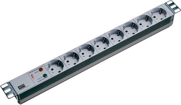 Bachmann - EAN: 04016514014477 - 19'' Aluminium Steckdosenleiste 1HE8 Schutzkontaktsteckdosenmit überspannungsschutz 6,5kAca. 2m Anschlusskabel H05VV-F 3G1,5 schwarz mitSchutzkontaktwinkelsteckergrau RAL 7035optische Funktionsanzeige und AusfallanzeigeHaltewinkel aus Edelstahl, verstellbar - bei reichelt.de - aus Yadore Produktdaten ![]() Bachmann BACH 333.404 - Steckdosenleiste, 19'', 8-fach mit Blitzschutz