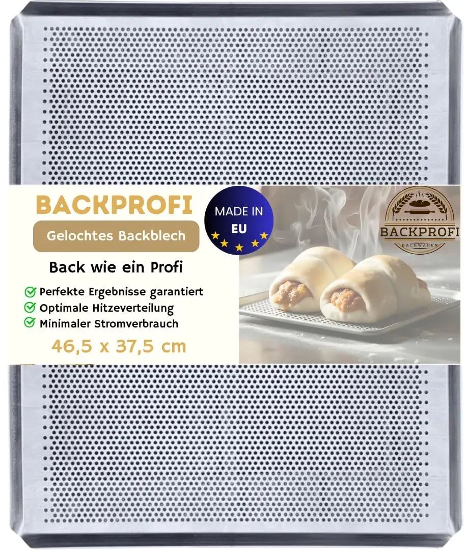 Kategorie: Backbleche - backtechnik.de - GTIN:9180018840018 - Dein perfektes, knuspriges Backergebnis - Wie beim Profi-Bäcker Qualität aus Deutschland: Mit Erfahrung und Liebe zum Detail in Deutschland entworfen und produziert. Geeignet für viele Backofen-Modelle wie Siemens, Bosch, Neff, AEG, Electrolux, Zenker, Whirlpool und Bauknecht. Vielseitig einsetzbar Ideal für Brötchen, Brot, Pizza, Knäckebrot, Flammkuchen, Kekse sowie zum Trocknen von Obst & Gemüse. Auch als klassisches Kuchenblech nutzbar. Optimale Wärmeverteilung & knusprige Kruste Die feine 3 mm Lochung sorgt für eine perfekte Luftzirkulation im Ofen. So wird Dein Gebäck gleichmäßig gebacken und erhält eine goldbraune, knusprige Kruste wie frisch vom Bäcker. Robust & langlebig Hergestellt aus hochwertigem, 1,5 mm starkem Aluminium mit verstärktem 45 -Rand für maximale Stabilität. Hitzebeständig bis 250 Grad Celsius. Energiesparendes Backen Aluminium speichert und leitet Wärme besonders effizient, sodass Dein Ofen schneller die gewünschte Temperatur erreicht. Das spart Energie und sorgt für nachhaltiges Backen. Einfache Reinigung Handwäsche empfohlen! Aluminium kann sich in der Spülmaschine verfärben, daher einfach mit warmem Wasser und mildem Spülmittel reinigen. Versandkostenfrei innerhalb Deutschlands. - 42,90 Euro bei Amazon Marketplace Home - gefunden von billiger.de Ein tiefes Backblech von LUTH Premium Profi Parts, das sich hervorragend als Bratpfanne oder Fettpfanne eignet. ![]() ![]() LUTH Premium Profi Parts Backblech Ofenblech 46,5 x 37,5 cm Bratpfanne Fettpfanne Tief kompatibel mit Bosch Siemens Balay 00434178 434178