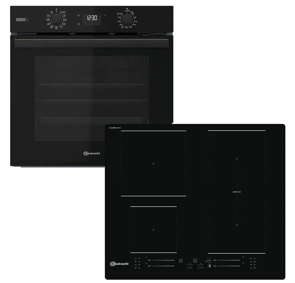 lieferbar-in 2-3 Werktagen bei dirBAUKNECHT Backofen-Set BAKO STEAM PYRO, mit 2-fach-Teleskopauszug, Pyrolyse-Selbstreinigung, Dampffunktion, PowerHeißluft, Pizzafunktion, 2-fach-Teleskopauszug schwarz
