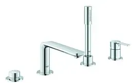 Kategorie: Badewannenarmaturen - Grohe - GTIN:4005176409233 - Zur Zeit nicht lieferbar - voraussichtlich wieder ab 19./20.kwGrohe Lineare Wannenarmatur 19577001 Artikelnummer 19577001 4-Loch Einhand-Wannenkombination GROHE SilkMove 35 mm Keramikkartusche mit Temperaturbegrenzer GROHE StarLight Oberfläche bestehend aus: Auslauf-Aufnahme vormontiert EHM Bedienelement Wanneneinlauf mit Mousseur Umstellung Wanne/Brause Stabhandbrause Sena (28 034) Metallbrauseschlauch 2000 mm flexible Anschlussschläuche Anschluss für Brauseschlauch Eigensicher gegen Rückfließen kann mit 29 037 verwendet werden - 607,89 Euro bei Skybad - gefunden von billiger.de Die Grohe Eurocube Wannenarmatur ist eine hochwertige 4-Loch-Wannenrandarmatur mit markantem, kubischem Design. ![]() ![]() Grohe Eurocube Wannenarmatur 19897001 chrom