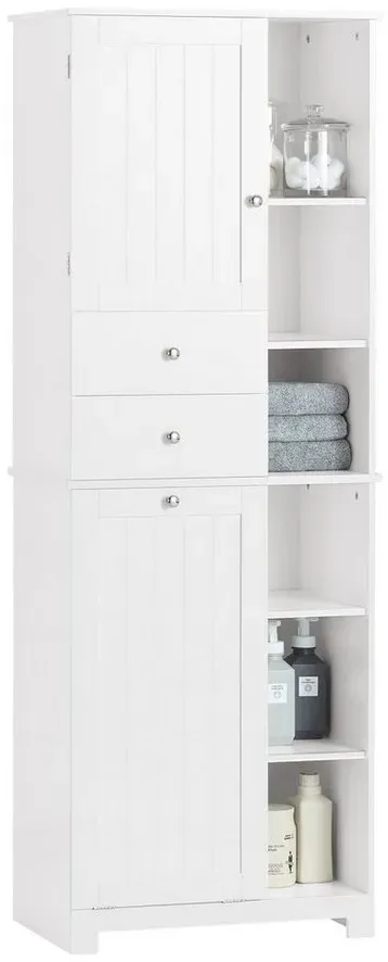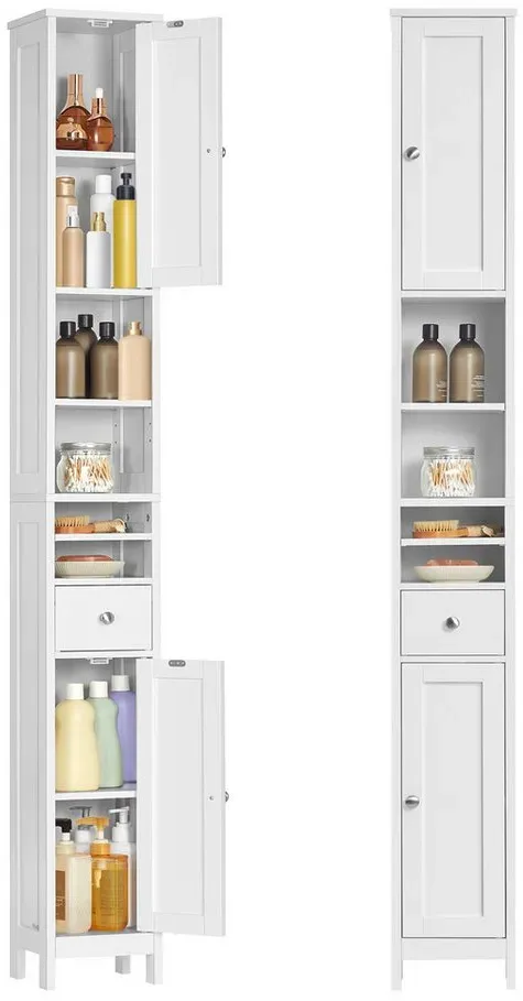 lieferbar-in 3-4 Werktagen bei dirVASAGLE Badkommode Badezimmerschrank Badschrank, hoch, schmaler Aufbewahrungsschrank, mit verstellbaren Ablagen, Schublade, offenen Fächern weiß