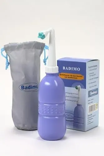 Zustand: Neu - Intimduschen & Klistiere - Badimo - BP-30 - EAN: 4056865997210 - Badimo BP30: Das mobile Bidet - speziell entwickelt für die Anwendung auf Reisen und für unterwegs. In der Verpackung enthalten ist eine praktische Tasche (siehe Abbildung). Erleben Sie eine sanfte und saubere Reinigung für das perfekte Wohlgefühl. Apothekenqualität: Bestellbar auch in Ihrer Apotheke unter der Pharmazentralnummer (PZN) 6165877. Das Badimo BP30 eignet sich nicht nur für die Intimpflege nach dem Stuhlgang, sondern auch bei Erkrankungen im Intimbereich (z.B. Morbus Crohn, Hämorrhoiden), während der Schwangerschaft oder für die einfache Intimhygiene für Frauen während der Periode. Die einfache Handhabung und das leichte Zusammendrücken der Flasche wurden durch eine langjährige Weiterentwicklung seit 2004 optimiert. Die patentierte Formgebung der Düse und das Ventil sorgen für eine optimale Säuberung, bei leichtem Drücken der Flasche. - Verkäufer: apohealth - Gesundheit aus der Apotheke im amazon.de Marketplace ![]() ![]() Badimo BP30 (315 ml) - mobiles Bidet für daheim und unterwegs, Po-Dusche (mit Deckel & Tasche), das Original,spart Klopapier,Reise Bidet, Intimdusche,seit 2008 in deutschen Apotheken