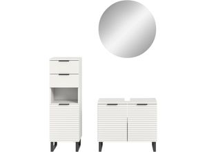 lieferbar-in 4-5 Werktagen bei dirHomeline Badmöbel-Set Badmöbel-Set Dennizz badmöbel Set Weiß Kosmetik Spiegel 60 90 120 cm, (Spar-Set, 5-St., Badezimmer Möbel Set) weiß 120 cm x 45 cm x 46 cm