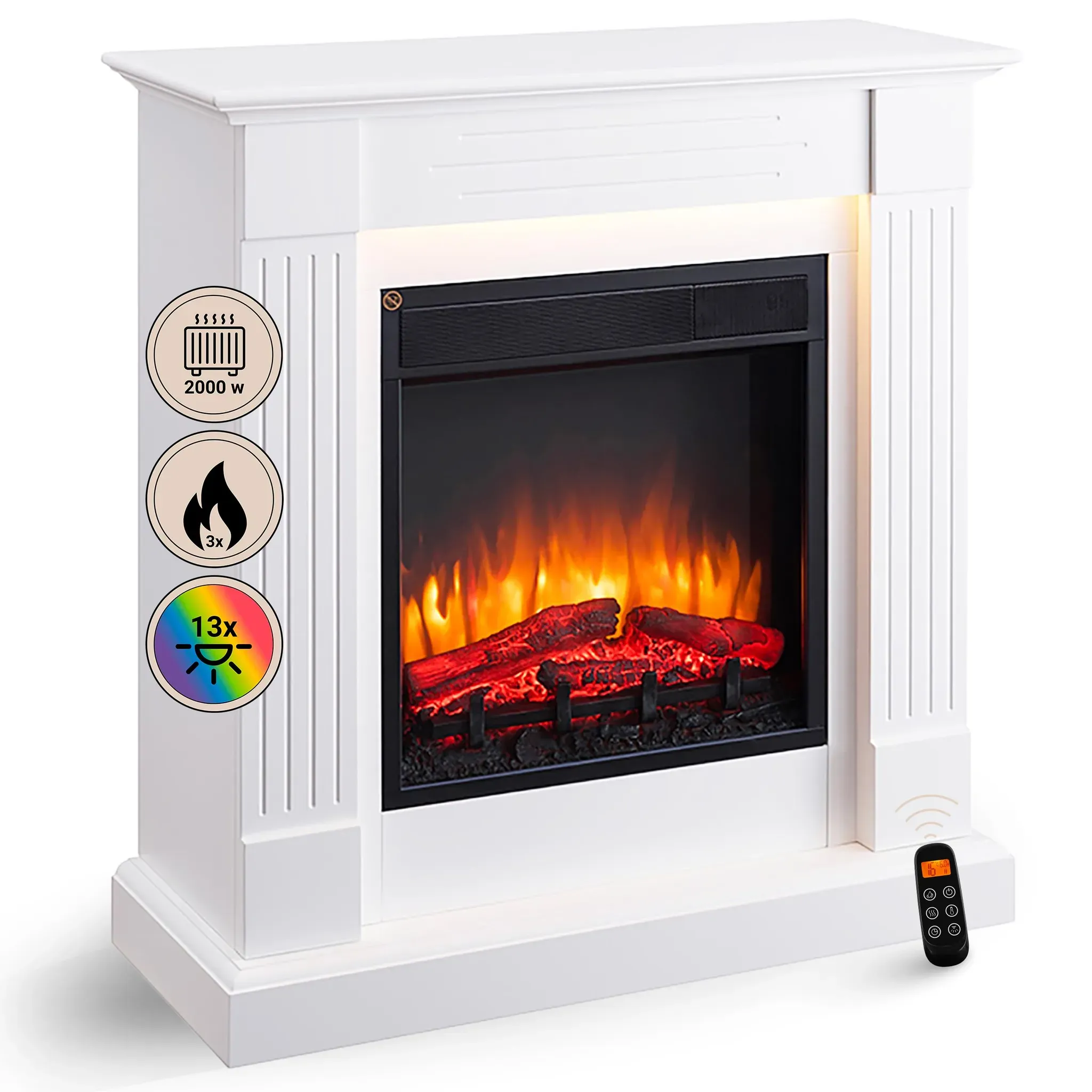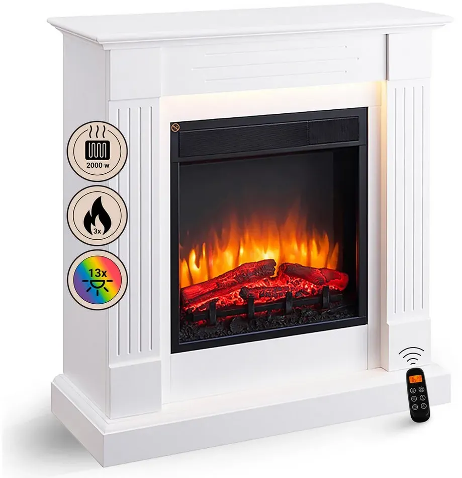 lieferbar-in 4-5 Werktagen bei dirBalderia Elektrokamin BALDERIA Ladina - Standkamin - weiss, LED-Beleuchtung 3D-Flammeneffekt Fernbedienung Timer Thermostat weiß