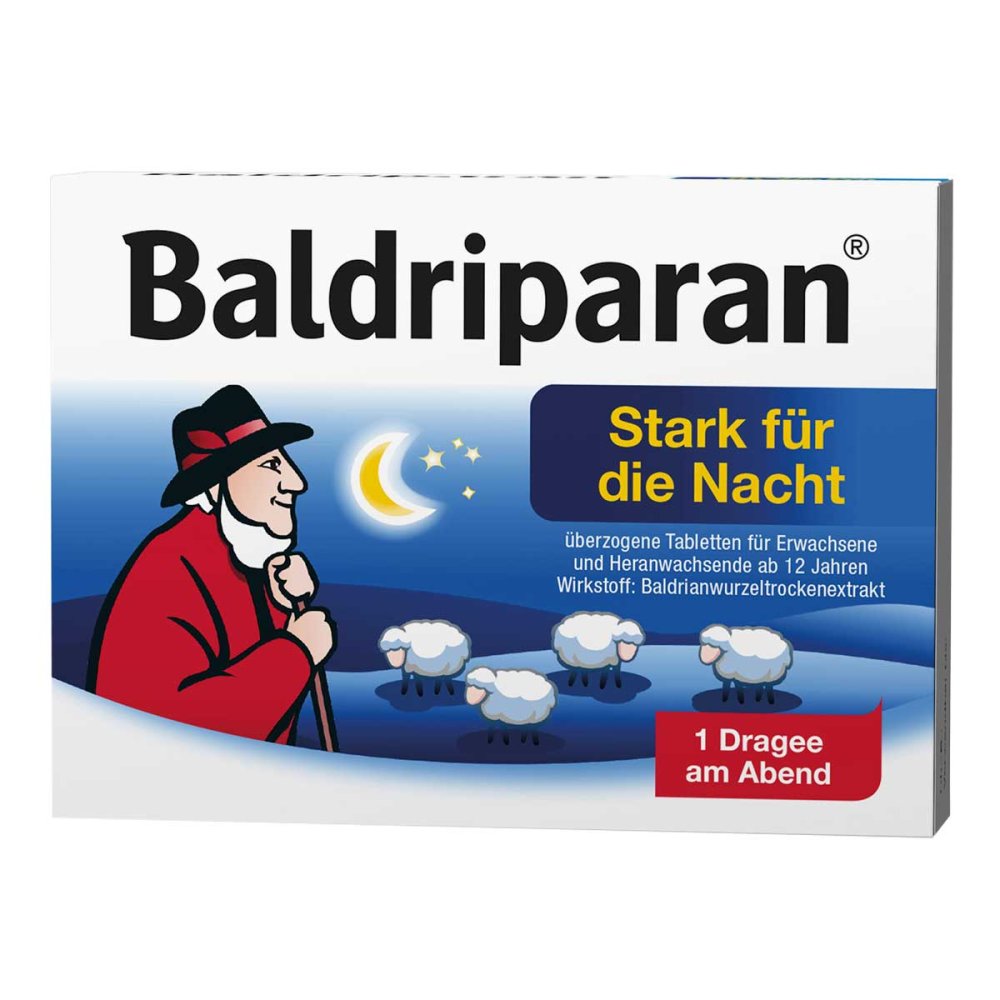 Zustand: Neu - 0,48 € / Stück - Baldrian Pflanzliches Ergänzungsmittel Baldrian - Baldriparan PharmaSGP GmbH - 00499175 - EAN: 4260639690034 - PFLANZLICHES SCHLAFMITTEL NR.1* - Baldriparan Stark für die Nacht ist das pflanzliche Schlafmittel Nr.1* aus der Apotheke BESCHLEUNIGT DAS EINSCHLAFEN - Baldrian hat nachweislich eine schlaffördernde Wirkung und beschleunigt mit Pflanzenkraft das Einschlafen. Anders als bei manchen chemisch-synthetischen Schlafmitteln wird der natürliche Schlafrhythmus nicht verändert FÖRDERT DAS DURCHSCHLAFEN¹ - Baldriparan hilft gegen nervös bedingte Schlafstörungen und verbessert die Schlafqualität. Die Tiefschlafphase, eine wichtige Phase der Regeneration, wird bewahrt und es ist keine Schläfrigkeit am Folgetag zu befürchten KONTROLLIERTE QUALITÄT - Alle Wirk- und Hilfsstoffe wurden im Rahmen der Zulassung auf ihre Sicherheit hin überprüft. Herstellung und Qualitätssicherung unterliegen zudem regelmäßigen Kontrollen OHNE ABHÄNGIGKEITSPOTENZIAL - Viele herkömmliche Schlaftabletten bergen ein Abhängigkeitspotenzial und sollten nur kurzfristig eingenommen werden. Bei Baldriparan besteht diese Gefahr nicht, die Dragees sind auch für eine längere Anwendungsdauer geeignet - 6 Händler im amazon.de Marketplace juvalis.de Baldriparan Stark für die Nacht
