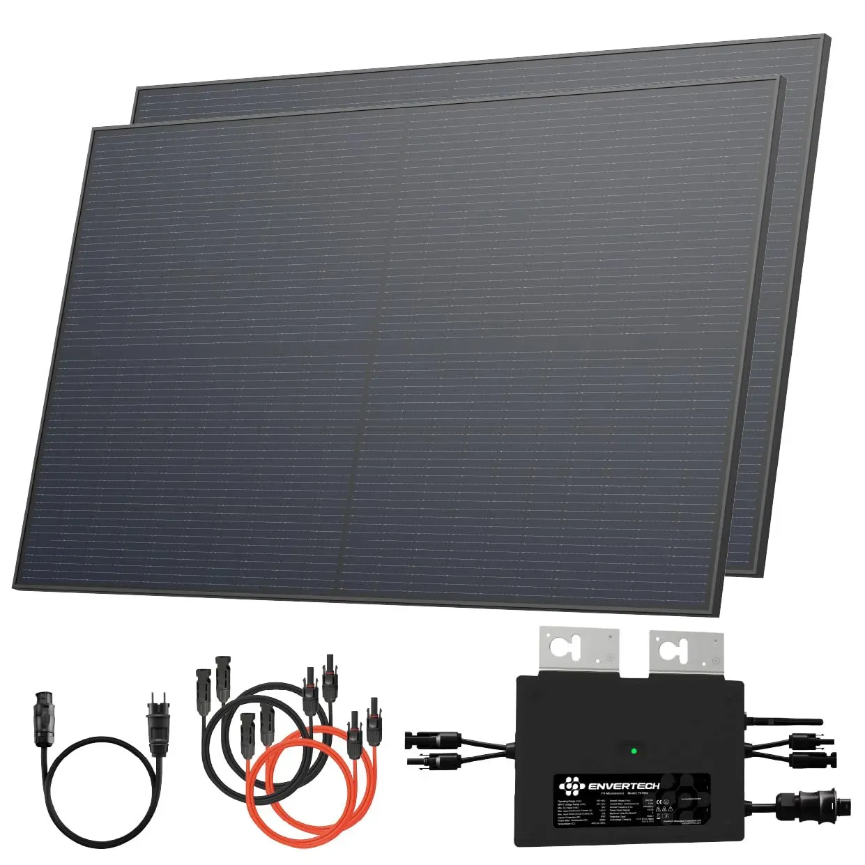 6 Werktage in_stock - 1000 Watt (Zwei Solarmodule) Solarenergie - EAN:4262478841417 - SunEnergyXT Solar€¯Balkonkraftwerk€¯1000€¯Wp€¯Komplettset - 2€¯Ã—€¯500€¯Watt€¯Solarmodule, Deye€¯800€¯Watt€¯Wechselrichter & SunEnergyXT BK215€¯Speicher 1. Leistungsstarkes SunEnergyXT Balkonkraftwerk€¯1000€¯Wp Zwei bifaziale 500€¯W€‘Module liefern zusammen 1€¯kWp - ideal, um Grundlast plus Tagesverbrauch zu decken. N€‘TOPCon€‘Zellen holen bei Reflexion bis zu€¯+10€¯% Mehrertrag heraus. Platzbedarf: ~4€¯m². Damit nutzt du Balkon, Carport oder Terrassendach maximal aus. 2. Deye€¯SUN€‘M80G4€‘EU€‘Q0€¯- 800€¯Watt Mikro€‘Wechselrichter 800€¯VA AC€‘Leistung bleibt unter der 800€‘W€‘Freigrenze, keine Genehmigung nötig. Zwei unabhängige MPPT€‘Eingänge (33€‘55€¯V, je 400€‘800€¯Wp). Wirkungsgrad 96,5€¯%, passiv gekühlt, IP67 - funktioniert von€¯€‘40€¯°C bis€¯+65€¯°C. Integriertes WLAN, Live€‘Monitoring in der SunEnergyXT€‘App ohne extra Gateway. VDE€‘AR€‘N€¯4105€‘konformer Netz€‘ und Schnellabschaltschutz. Kompakt: 280€¯Ã—€¯190€¯Ã—€¯40€¯mm bei 3€¯kg, 15€¯Jahre . 3. SunEnergyXT BK215€¯Stromspeicher - modular erweiterbar Plug und Play 2,15€¯kWh nutzbare Kapazität, 1,92€¯kW Ausgangsleistung. Zwei PV€‘Ports à €¯800€¯W insgesamt 1600€¯W Ladeleistung. LiFePO‚„, €¯8000€¯Zyklen (20-80€¯% DoD), wetterfest€¯IP65, integrierte Heizung. Per WLAN oder Bluetooth steuerbar, Shelly€‘Integration möglich. Bis zu drei SunEnergyXT B215 Module ansteckbar - Gesamtkapazität 8,6€¯kWh. Gewicht 32,5€¯kg, Abmessungen ... Das ANKER SOLIX SET1 für 1319.99 Euro ist eine Premium-Option mit 1760 W Leistung, einem 1,6 kWh Speicher und SmartMeter, ideal für maximale Effizienz und Überwachung. Reichelt.d e