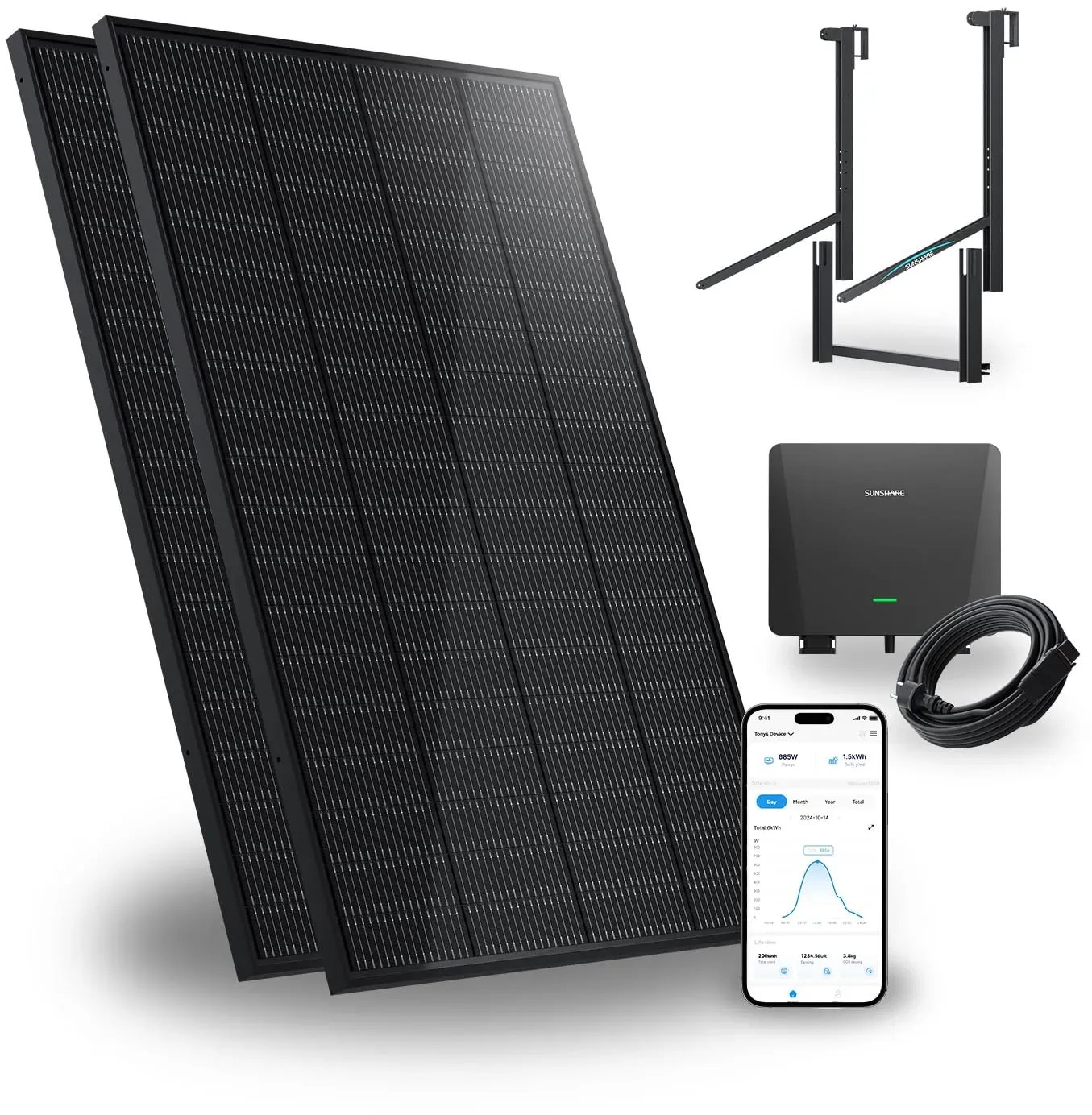 keine Angabe 10 Werktage in_stockSUNNIVA R 500W Balkonkraftwerk BIFAZIAL FULLBLACK komplett Steckdose HOYMILES 400 Watt Wechselrichter, PV Solaranlage Komplettset, 1x 500W N-Type Glas-Glas Bifacial Solarmodule, 5m Kabel
