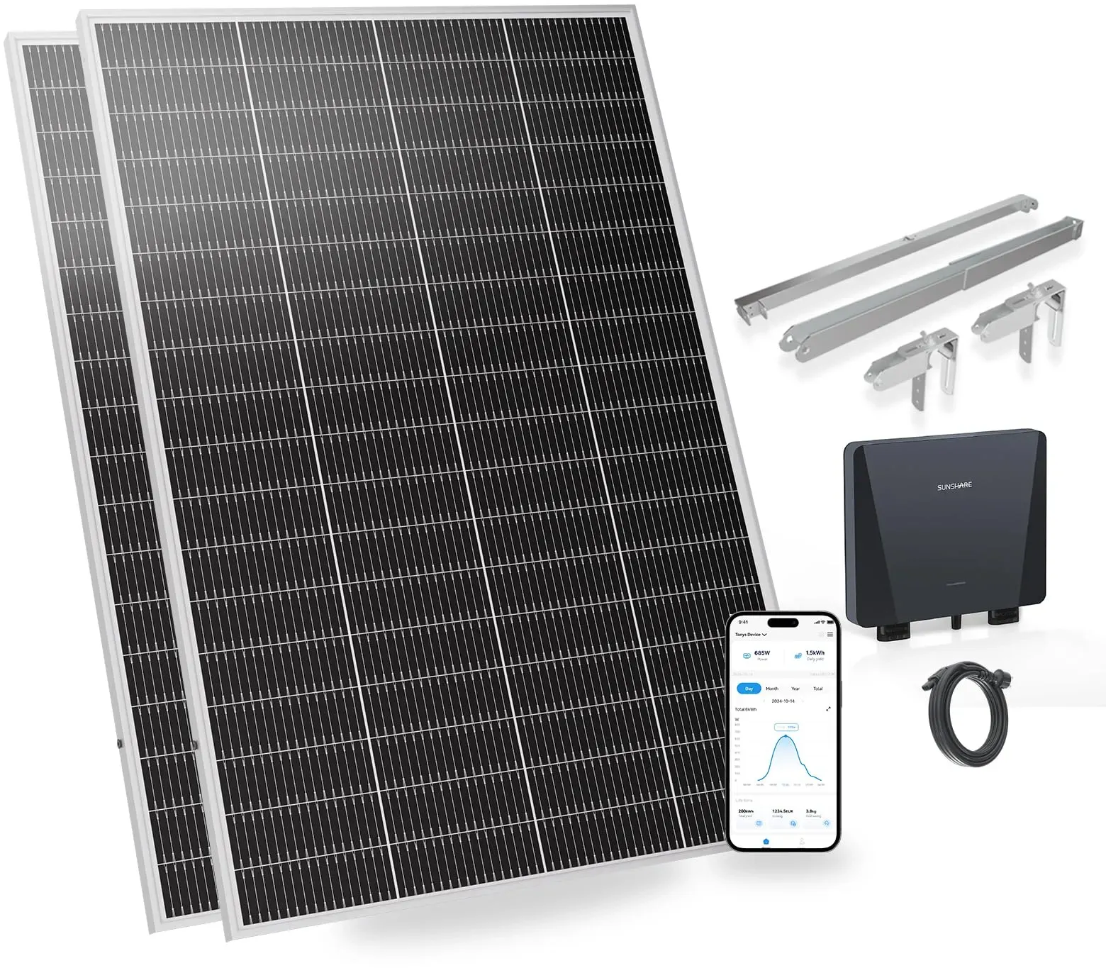 Zustand: Neu - Netzgebundene Systeme Netzgebundene Photovoltaikanlagen - Solakon - SK-011195-WH SK-011195-BH - - ð—˜ð—»ð—²ð—¿ð—´ð—¶ð—² ð—¶ð—ºð—ºð—²ð—¿ ð—¶ð—º ð—•ð—¹ð—¶ð—°ð—¸ - Mit der Solakon-App überwachen Sie Ihre Balkonkraftwerk Daten per WLAN-Funktion in Echtzeit. Sie sind direkt informiert über tägliche & jährliche Solarerträge & CO‚‚-Einsparungen! Dank einfacher Einrichtung und intuitiver Bedienung direkt startklar! Höchste Server-Standards durch deutsche Eigenentwicklung! ð—•ð—¶ð—³ð—®ð˜‡ð—¶ð—®ð—¹ð—² ð—¦ð—¼ð—¹ð—®ð—¿ð—ºð—¼ð—±ð˜‚ð—¹ð—² - Durch die bifazialen Solarmodule können Sie bis zu 30% mehr Energie erzeugen, bei gleicher Wattzahl. Die Technologie ermöglicht es, Sonnenlicht auf beiden Seiten der Module (Glas-Glas) zu nutzen. ð—£ð—¿ð—²ð—ºð—¶ð˜‚ð—º ð—•ð—®ð˜‚ð˜ð—²ð—¶ð—¹ð—² - Das 900W Balkonkraftwerk besteht nur aus hochwertigen Bauteilen. 2x bifaziale 450W TWMNH-48HD Solarmodule, 1x Growatt NEO 800W Wechselrichter, 2x 2,0m Verlängerungskabel, 1x 5m Kabel zur Steckdose & 1x Wechselrichterhalterung, 2x Wand Halterungen. ð—ªð—®ð—»ð—± ð—›ð—®ð—¹ð˜ð—²ð—¿ð˜‚ð—»ð—´ ðŸ¬-ðŸ¯ðŸ¬° - Die Photovoltaik Komplettanlage wird mit einer universellen Halterung für Ihre Wand/Fassade geliefert. Die Halterung kann kinderleicht an fast jeder Wand montiert werden. Der Winkel kann zwischen 0-30° eingestellt werden. ðŸ¯ðŸ¬ ð—ð—®ð—µð—¿ð—² ð—¹ð—¶ð—»ð—²ð—®ð—¿ð—² ð—Ÿð—²ð—¶ð˜€ð˜ð˜‚ð—»ð—´- Die Bauteile ... Dieses 800W SUNSHARE Ray Lite Balkonkraftwerk ist ein vormontiertes Komplettset, das eine schnelle Inbetriebnahme ermöglicht. ![]() ![]() SUNSHARE Ray Lite 800W Balkonkraftwerk mit Halterung ? Leichtes, vormontiertes Komplettset mit 800W Mikro-Wechselrichter & Solarpanel ? Geeignet für verschiedene Balkone ? Plug & Play