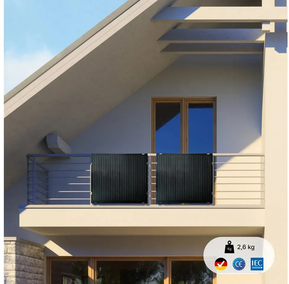 Kategorie: Solarpanele - Schwaiger - GTIN:4004005043846 - ULTRALEICHT & SCHMAL - Mit nur 5 mm Stärke bei 6,4 kg pro Modul eignen sich die Slim Line Panels perfekt für schmale Balkone - insbesondere bei höheren Stockwerken. Sie sind einfach zu transportieren sowie platzsparend installierbar. EFFIZIENTE ENERGIENUTZUNG - Zwei monokristalline 200 Wp Glasmodule mit 36 PERC-Zellen liefern kombiniert 400 Wp - ideal für eine hohe Energieausbeute auch bei diffusem Licht & kompaktem Flächenbedarf. ROBUST & WETTERFEST - Bestehend aus einer hochwertigen Alu-Legierung & hitzebeständigem, gehärtetem Glas bieten unsere Slim-Line Panels maximale Langlebigkeit bei jedem Wetter. INKLUSIVE ZUBEHöR - In unserem Komplett-Set sind zusätzlich ein festmontiertes 0,85m Anschlusskabel mit DC Solarstecker, 2x2 m Verlängerungskabel & 24x Kabelbinder enthalten - Perfekt für eine schnelle Montage. KOMPETENZ DURCH ERFAHRUNG - Seit 1946 steht Schwaiger für innovative & zertifizierte Produkte mit höchsten Qualitätsstandards im Bereich der Elektronik-& Kommunikationstechnologie. - 206,00 Euro bei Amazon Marketplace Home Improvement - gefunden von billiger.de Ein flexibles Solarpanel-Set mit 200W und Wechselrichter, das sich leicht an verschiedene Oberflächen anpassen lässt. ![]() ![]() Solarpanel Flexibel mit 230V 300Watt Wechselrichter, Balkonkraftwerk komplettset Steckdose Plug & Play, 2 x 100W Flexibles Solarpanel 200W, Photovoltaik Balkon Komplett