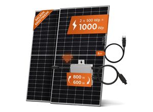 Kategorie: Solaranlagen - Zendure - Revolutionärer Hybrid-Mikrowechselrichter für Balkonkraftwerke:Der Zendure SolarFlow 800 Hybrid-Mikrowechselrichter mit MAX 1200W MPPT (2×430W) maximiert den Solarertrag und speichert überschüssige Energie automatisch. Das bidirektionale 800W AC-System reduziert den Netzbezug und erhöht die Eigenversorgung. Hoher Solarertrag auch bei wenig Licht – Dank fortschrittlicher Low-Light-PV-Technologie liefert SolarFlow 800 auch bei Bewölkung, morgens oder im Winter zuverlässig Energie – für eine stabile Stromversorgung im Alltag. Stromkosten senken mit dynamischen Tarifen:SolarFlow 800 kann den Speicher bei günstigen Strompreisen laden und bei hohen Tarifen entladen. So wird der Stromverbrauch intelligent verschoben und die Stromrechnung effektiv reduziert. Schutz für Batterie & längere Lebensdauer – Bei fehlender Sonneneinstrahlung bezieht das System automatisch Energie aus dem Netz, um die Batterie zu schützen. Das verhindert Tiefentladung und verlängert die Lebensdauer des Speichers. Intelligente Steuerung mit ZEN+OS & Plug-&-Play-Installation – Das ZEN+OS Energiemanagementsystem ermöglicht präzise, schnelle Regelung – auch ohne Internetverbindung. Plug & Play Solaranlage für Balkon oder Haus, einfache Installation in wenigen Schritten. Lieferumfang: 1× SolarFlow 800 Mikrowechselrichter, 2× bifaziale Solarmodule 430W, Anschlusskabel, Bedienungsanleitung. (Montagehalterung nicht enthalten; Lieferung in mehreren Paketen möglich.) - 279,00 Euro ... Dieses Solarway Balkonkraftwerk bietet eine gute Leistung von 1000W/800W mit bifazialen Solarmodulen zu einem attraktiven Preis. ![]() Solarway® 1000W Balkonkraftwerk 800W komplett Steckdose - neuester 800 Watt Wechselrichter - Solaranlage Komplettset - 500W bifaziale Solarmodule Envertech Zubehör