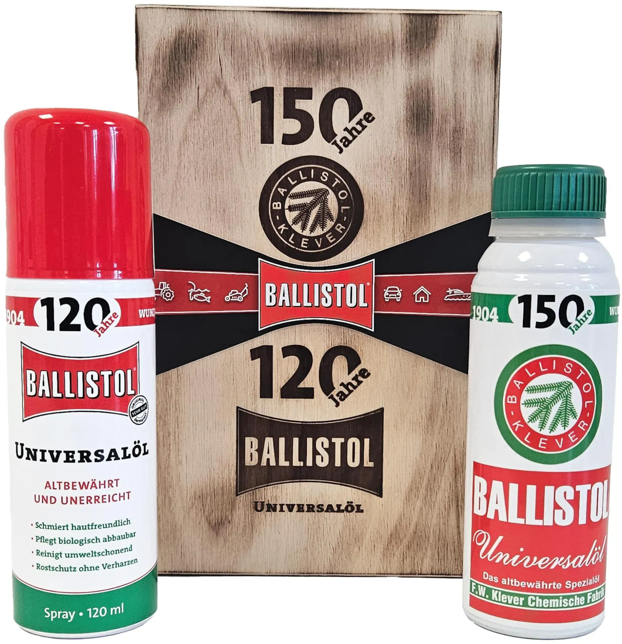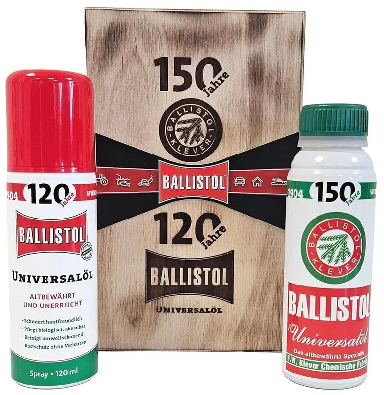 lieferbar-in 2-3 Werktagen bei dirRennerXXL Universalöl BALLISTOL Jubiläumsholzbox Universalöl 150 ml + 120 ml Spray