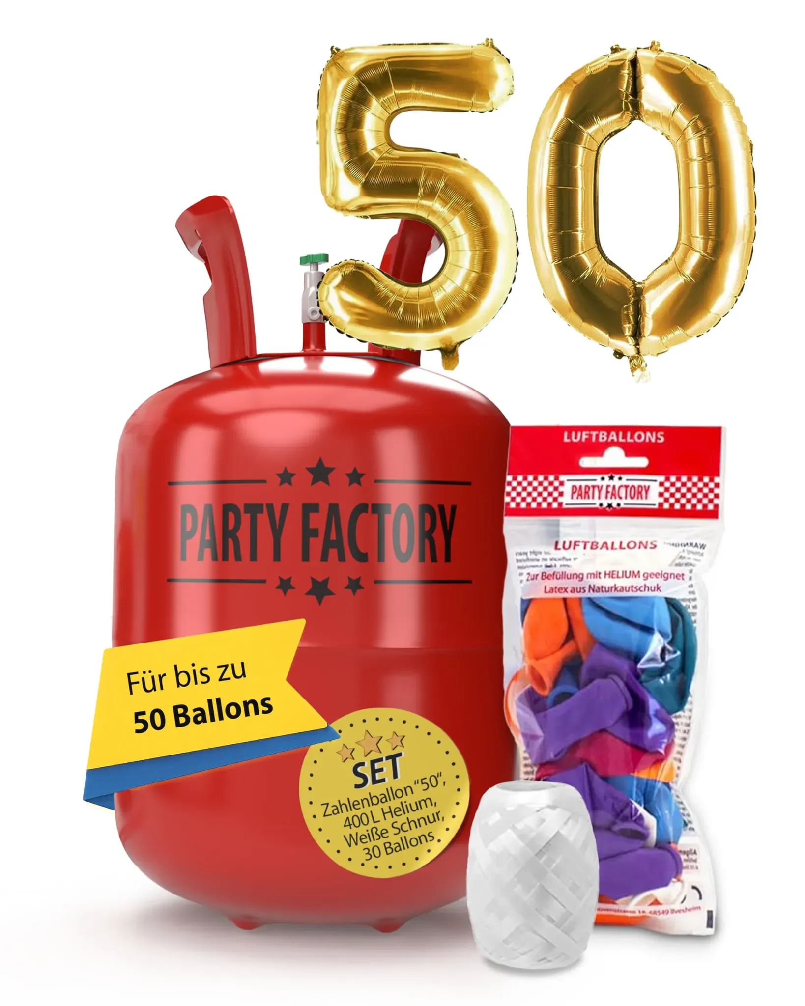 Kategorie: Party-Deko - Carpeta - GTIN:4260633383901 - 1x wiederverschliessbare, pfandfreie Einweg-Heliumflasche mit Füllventil + 50 Luftballons + 50 öko-Papier-Ballonbänder ... mit Helium (Ballonsgas) für bis zu 50 Ballons (siehe Tabelle) ... plus 50 bunte CARPETA-Latex-Ballons und ca. 28cm Durchmesser ... plus 50 öko-Ballon-Schnellverschüsse mit 1m Ballonband aus Papier, 100% recycelbar ... plus Erklärvideo, Bedienungsanleitung und Bedienungsbilder (auf der Verpackung) , Hersteller: Carpeta - 44,99 Euro bei Amazon Marketplace Toys - gefunden von billiger.de Ein großes Komplettset von Party Factory mit 400L Helium Gasflasche, XXL Zahlenballon "50" in Gold, 30 Latexballons und 40m Ballonschnur, ideal für Geburtstage und Jubiläen. ![]() ![]() Party Factory Helium Gasflasche 400L Komplett Set mit XXL Zahlenballon "50" Gold Partydeko Ballongas Flasche mit Folienballon, 30 Latexballons & 40m Ballonschnur Für Geburtstage & Feiern