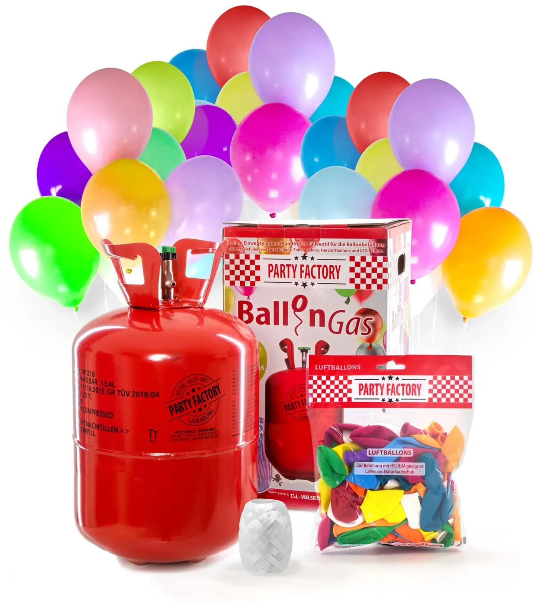 Kategorie: Party-Deko - VZ Trend Goods GmbH - GTIN:4260716118710 - Hersteller: Party Factory - 58,99 Euro bei Amazon Marketplace Toys - gefunden von billiger.de Ein Set mit HeliumStar® Ballongas Einwegflasche (0,400m³) und 50 bunten Latex-Luftballons sowie Band, ideal für eine farbenfrohe Party. ![]() ![]() HeliumStar R - Ballongas Einwegflasche eBay 0,400m³ & 50 bunte Latex-Luftballons & Band